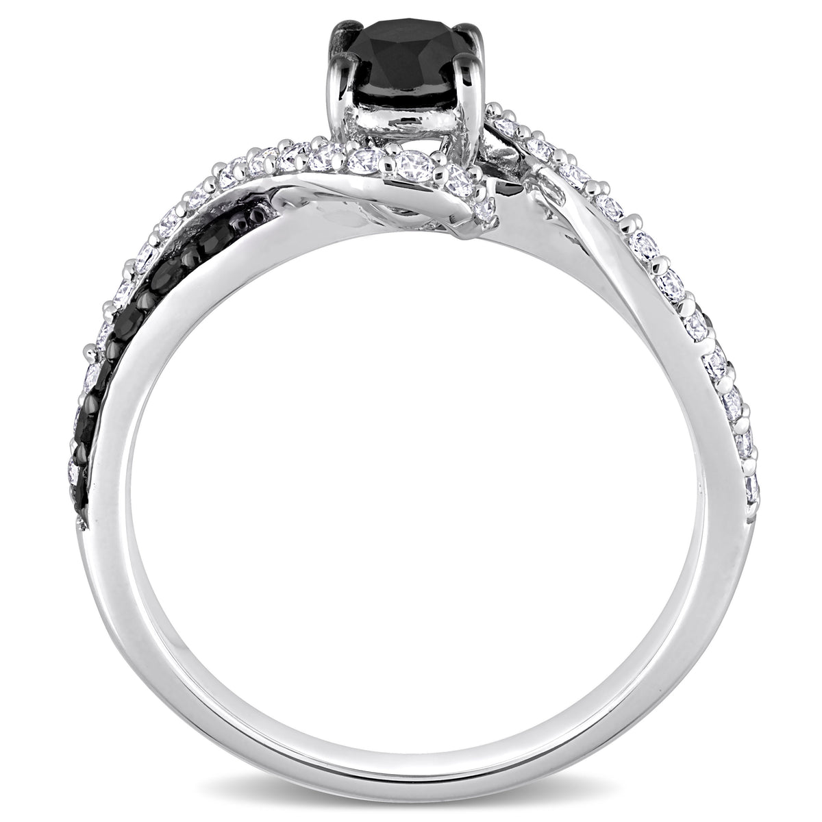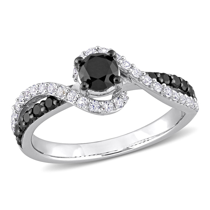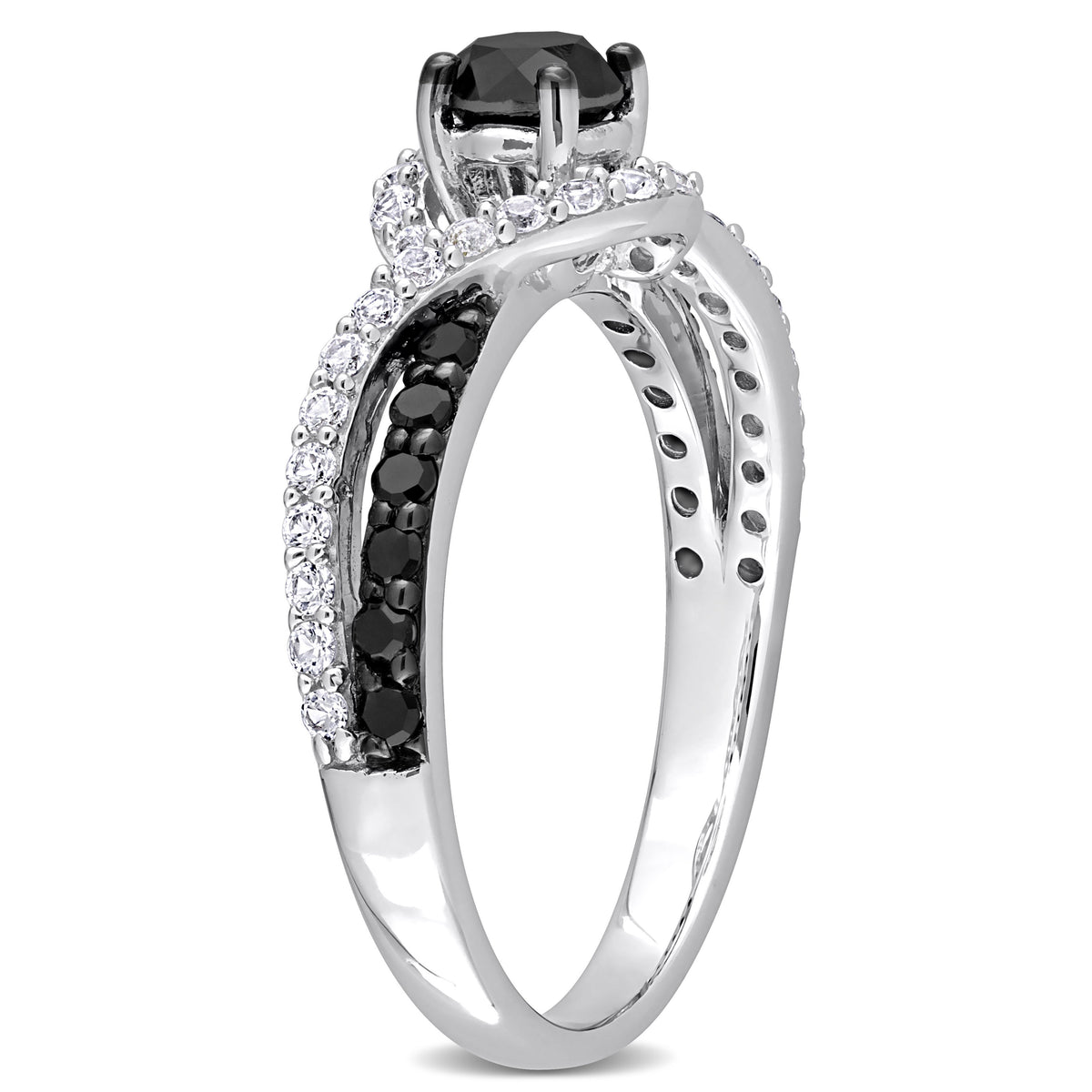 3/4 ct TW Black Diamond and White Sapphire Swirl Engagement Ring in Sterling Silver