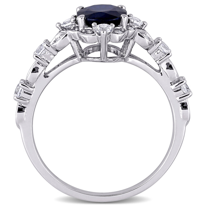 2 ct TW Diffused Sapphire White Sapphire and Diamond Accent Vintage Halo Ring in 10k White Gold