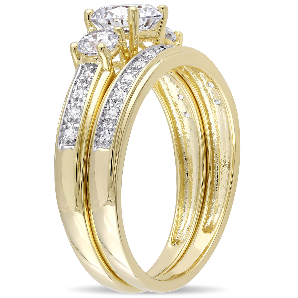 2 1/5ct TW Cubic Zirconia 3-Stone Bridal Ring Set in Yellow Plated Sterling Silver