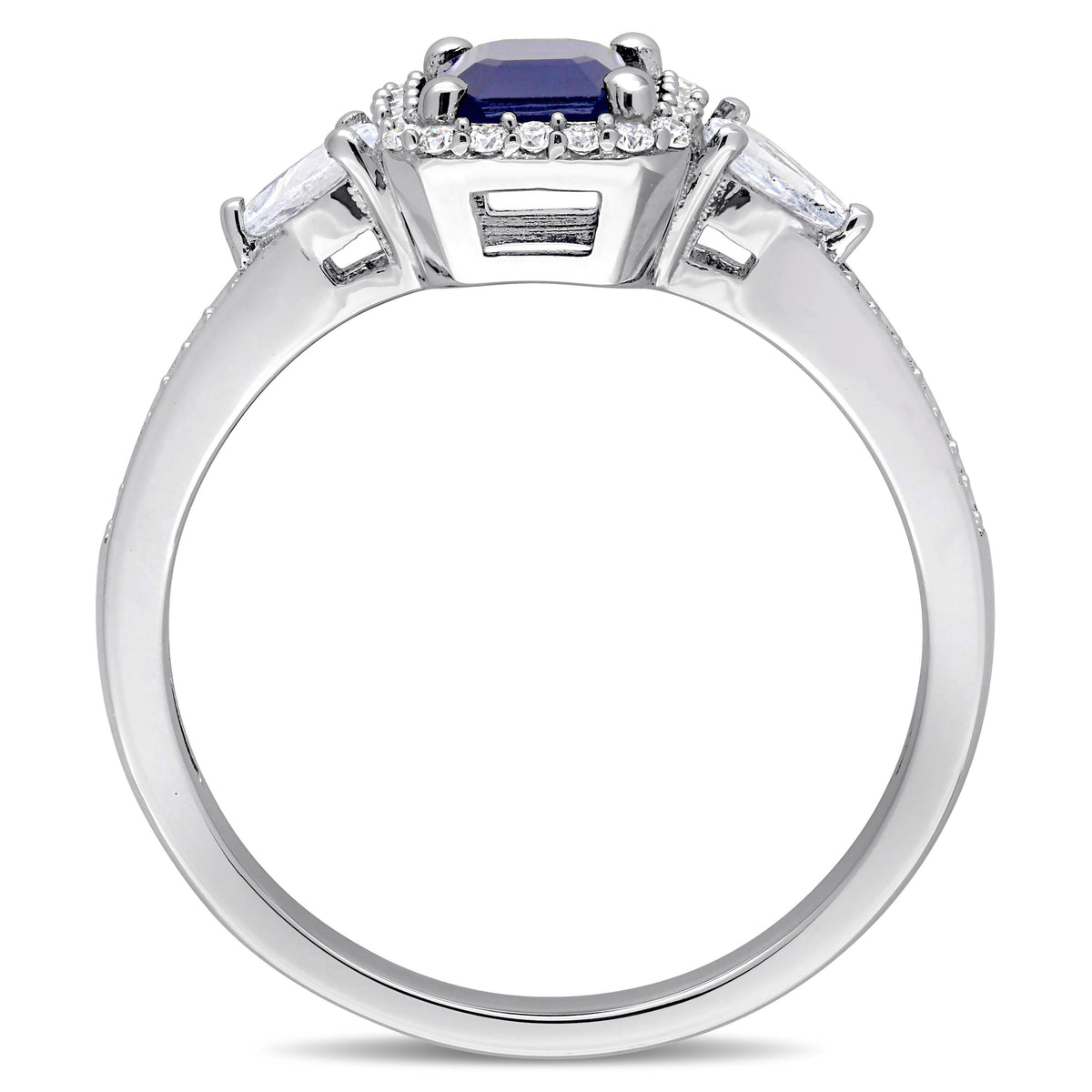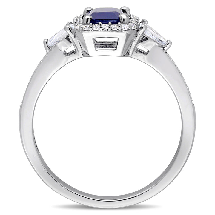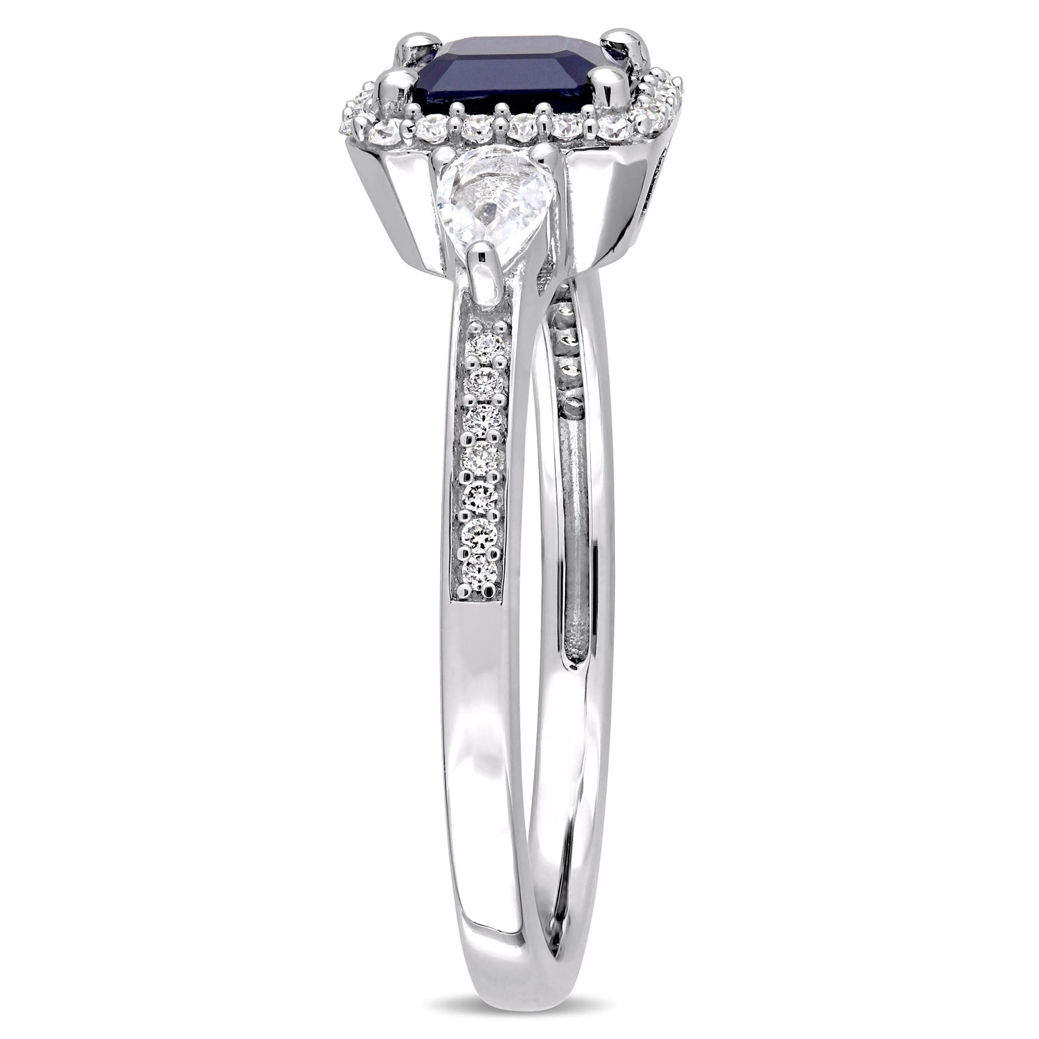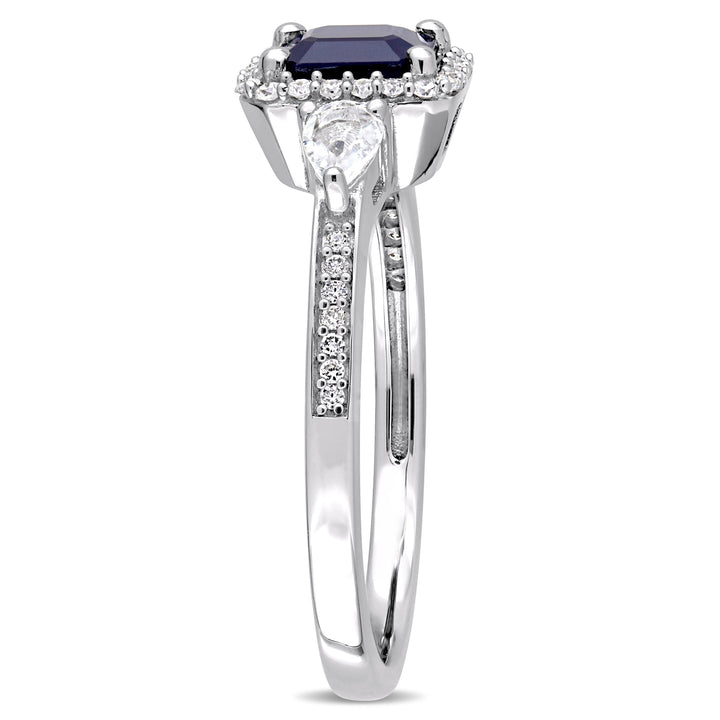 1ct TW Octagon-Cut Sapphire White Sapphire and 1/6 ct TW Diamond 3-Stone Ring in 14k White Gold