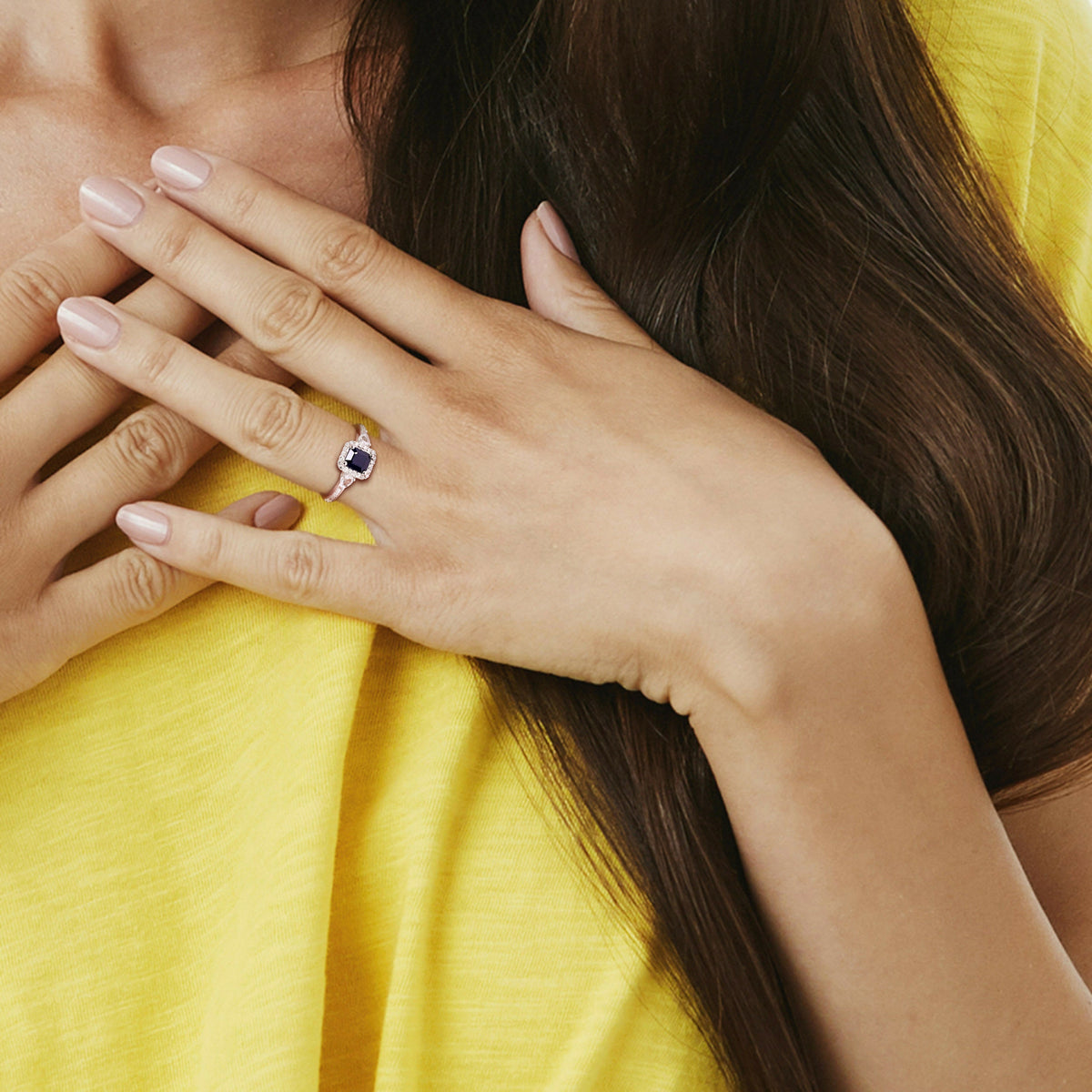 This 1ct TGW Octagon-Cut Sapphire, White Sapphire, and Diamond 3-Stone Ring by Mimi & Max is a dazzling statement of love and elegance. Featuring an octagon-cut sapphire flanked by sparkling white sapphires and framed with a halo of diamonds, this ring is an unforgettable symbol of romance.