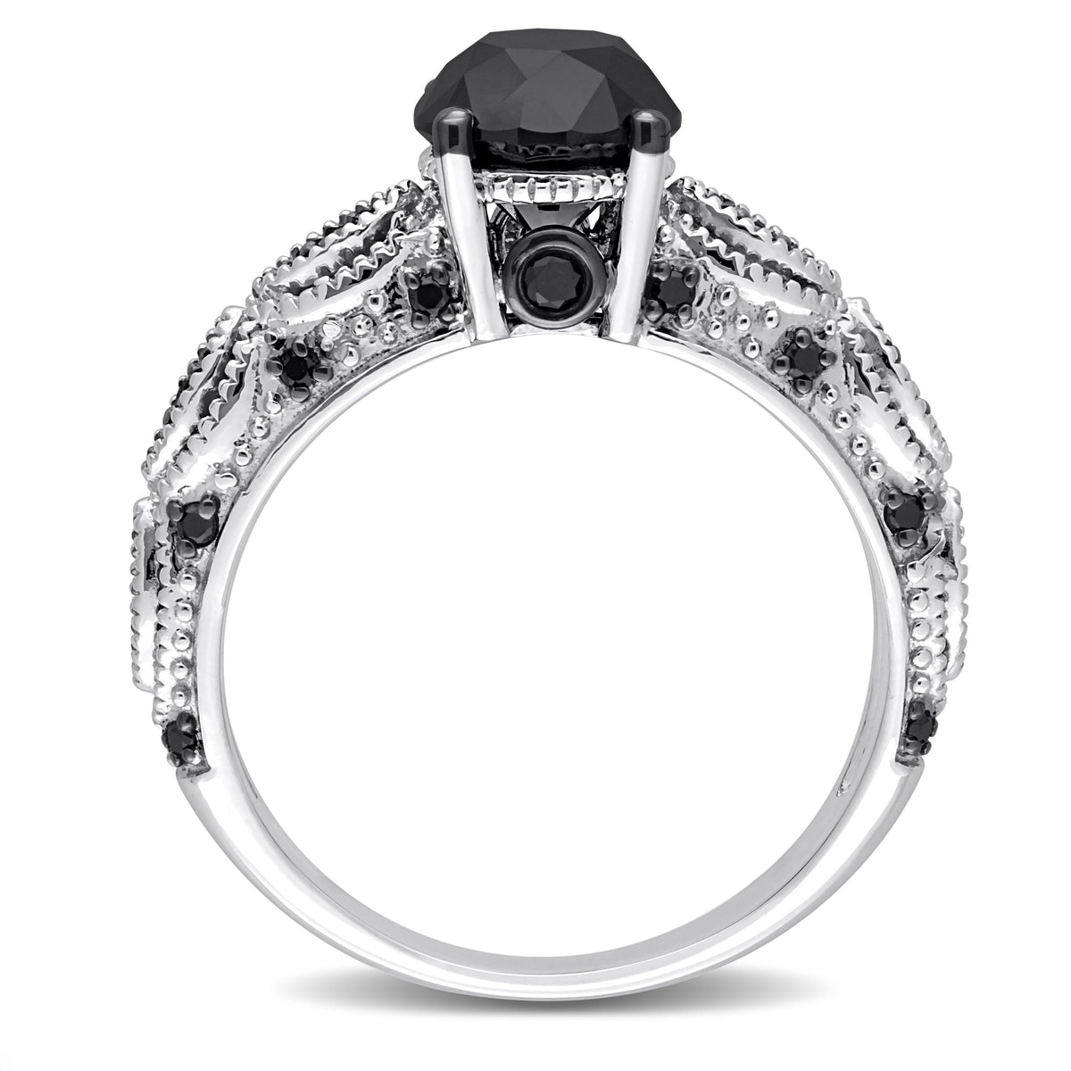 This 2ct TW Black Diamond Engagement Ring by Mimi & Max is a bold, vintage-inspired masterpiece, featuring black diamonds and intricate infinity details that symbolize everlasting love and strength.