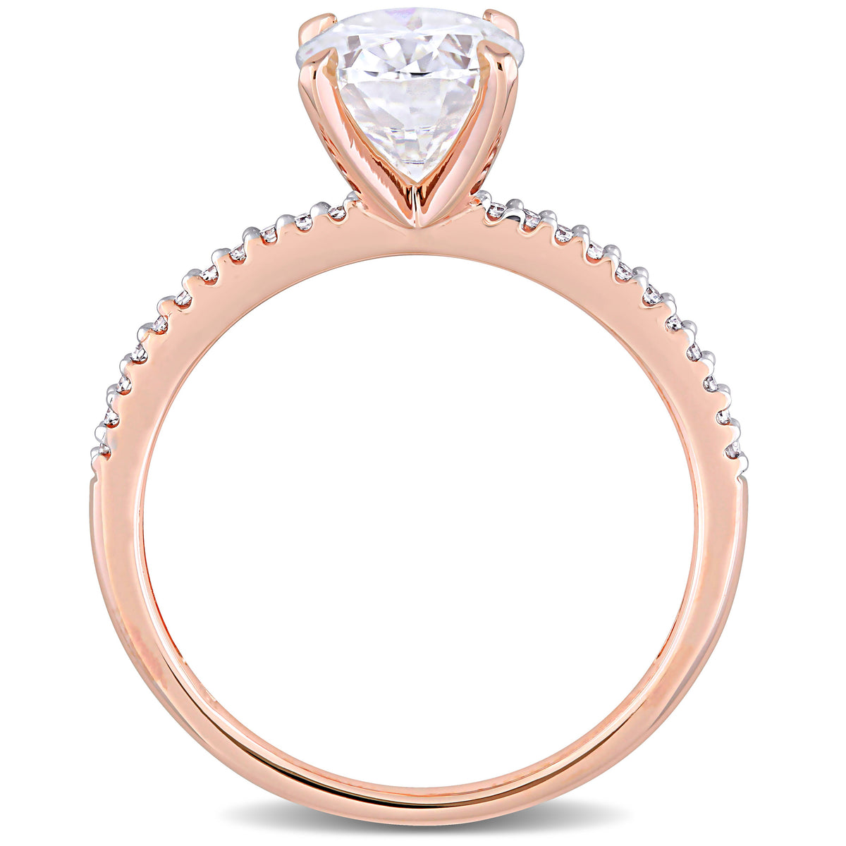 2 ct DEW Created Moissanite Oval Solitaire and 1/10ct TW Diamond Engagement Ring in 14k Rose Gold