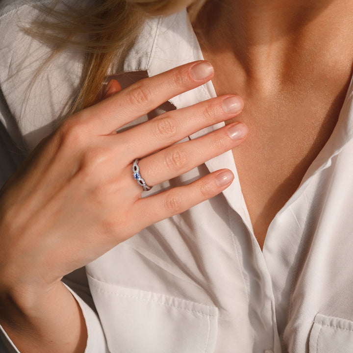 1/6 ct TW Tanzanite and 1/10ct TW Diamond Infinity Ring in Sterling Silver