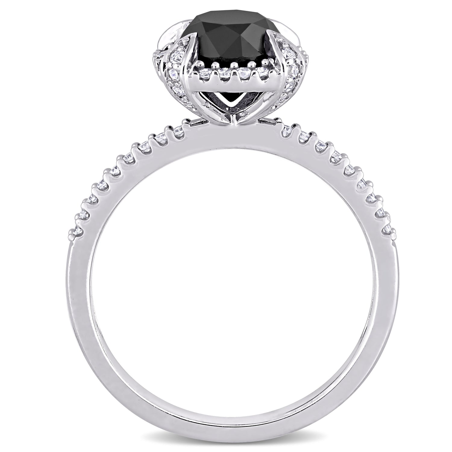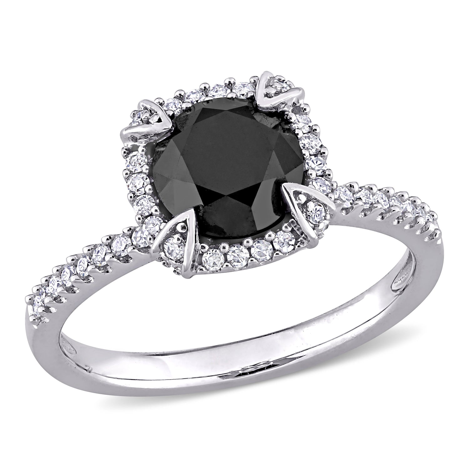 2 ct TW Black & White Diamond Halo Engagement Ring in 10k White Gold