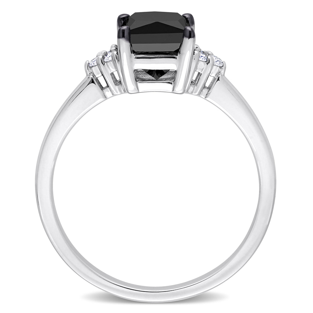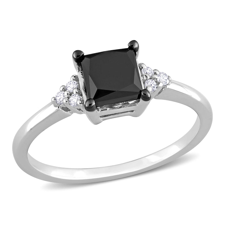 4/5ct TDW Square Black and White Diamond Engagement Ring in 14k White Gold