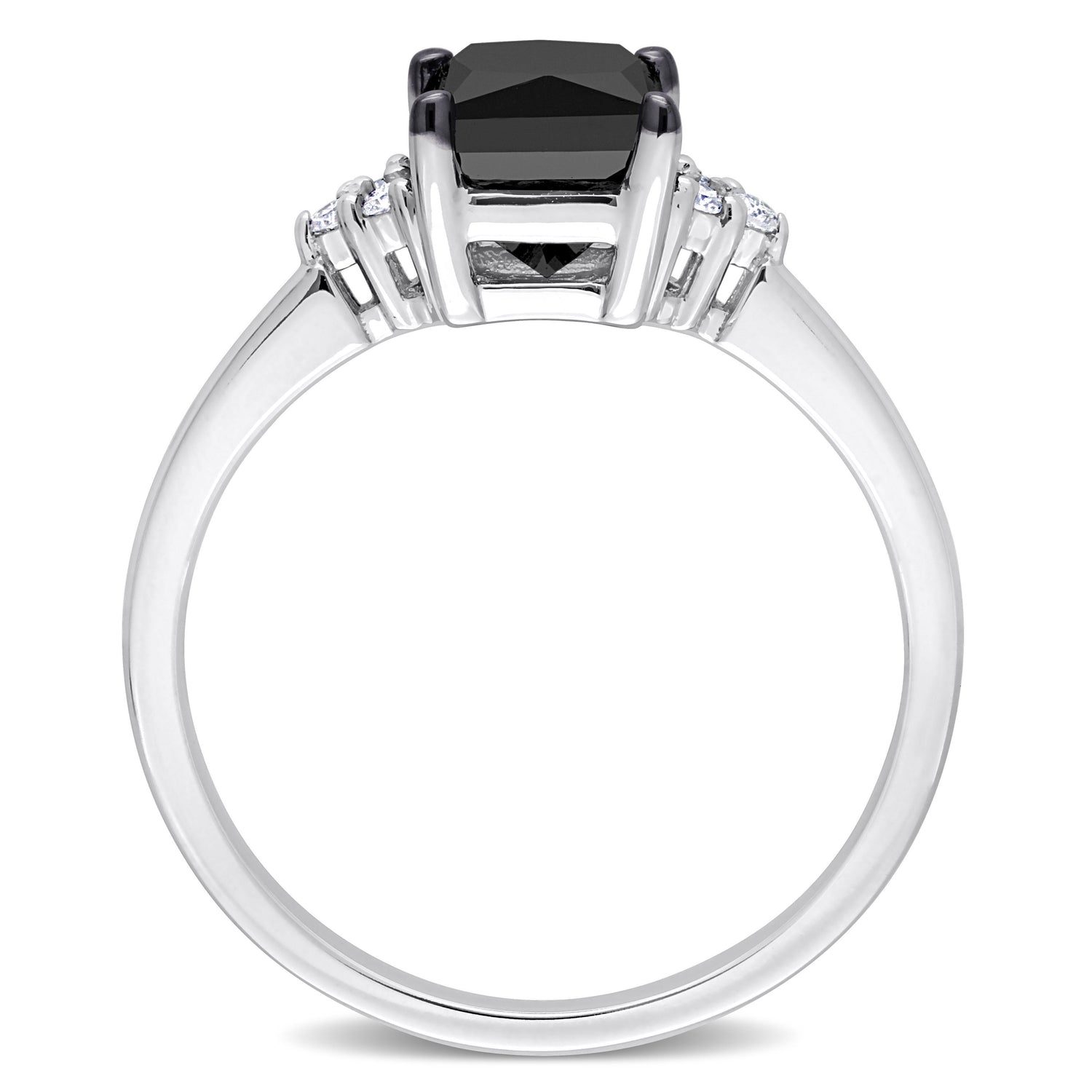 Made in 14k white gold with a princess-cut black diamond and six round white diamonds (G-H color, I2-I3 clarity).