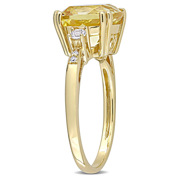 4 1/5ct TW Cushion-Cut Citrine and Created White Sapphire Ring Diamond Accent in 10k Yellow Gold
