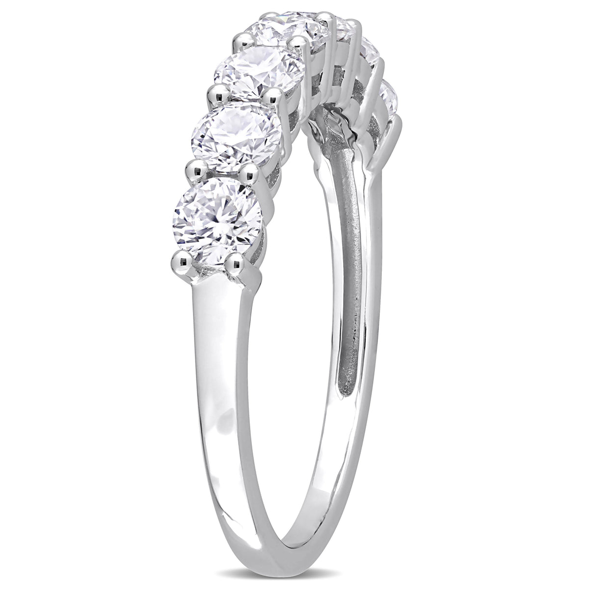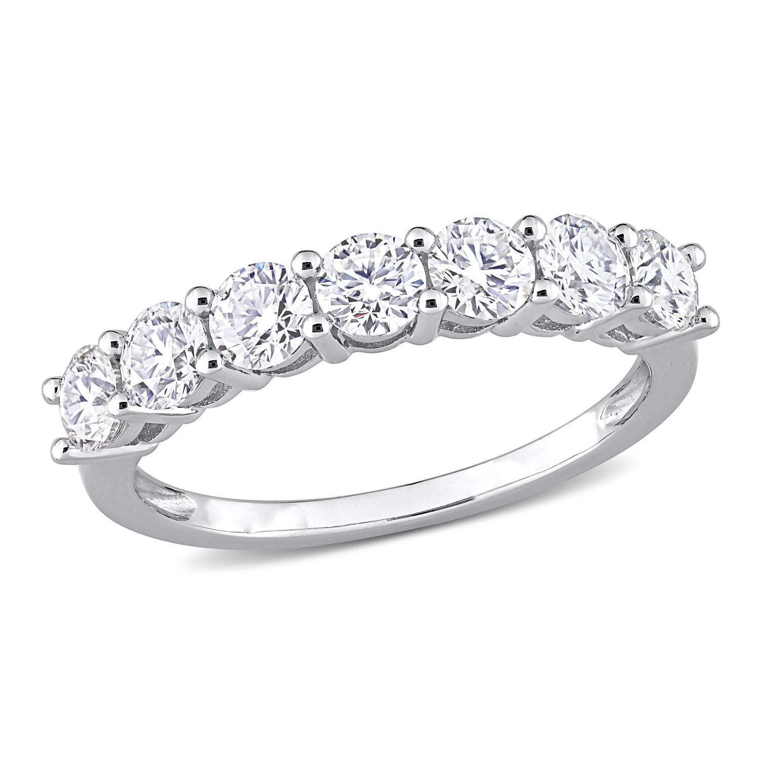 Made in sterling silver with seven round-cut created white moissanite gemstones (3.5x3.5mm).