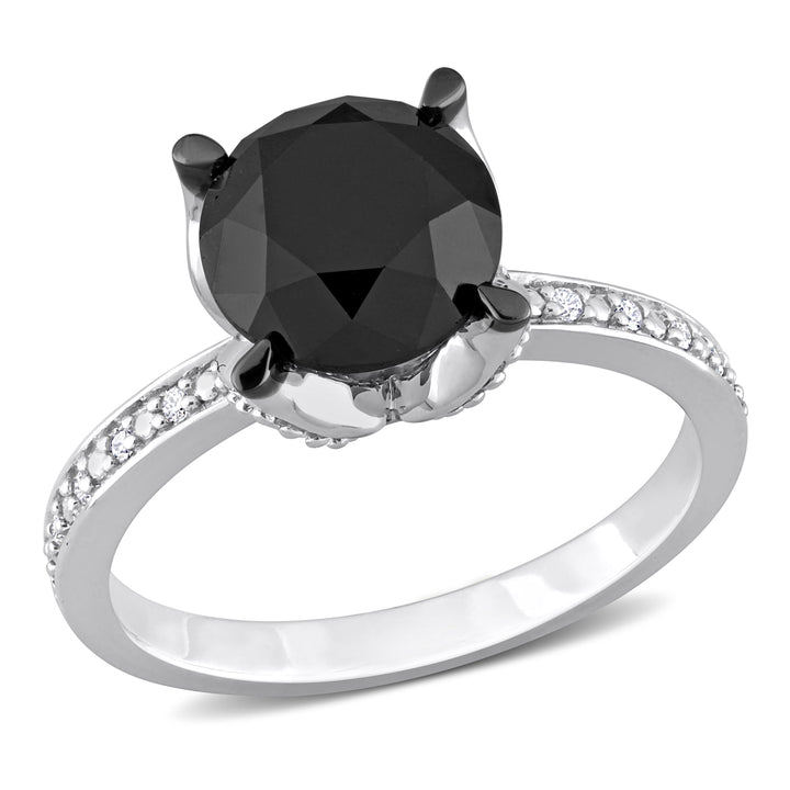 3ct TW Black and White Diamond Engagement Ring in 14k White Gold