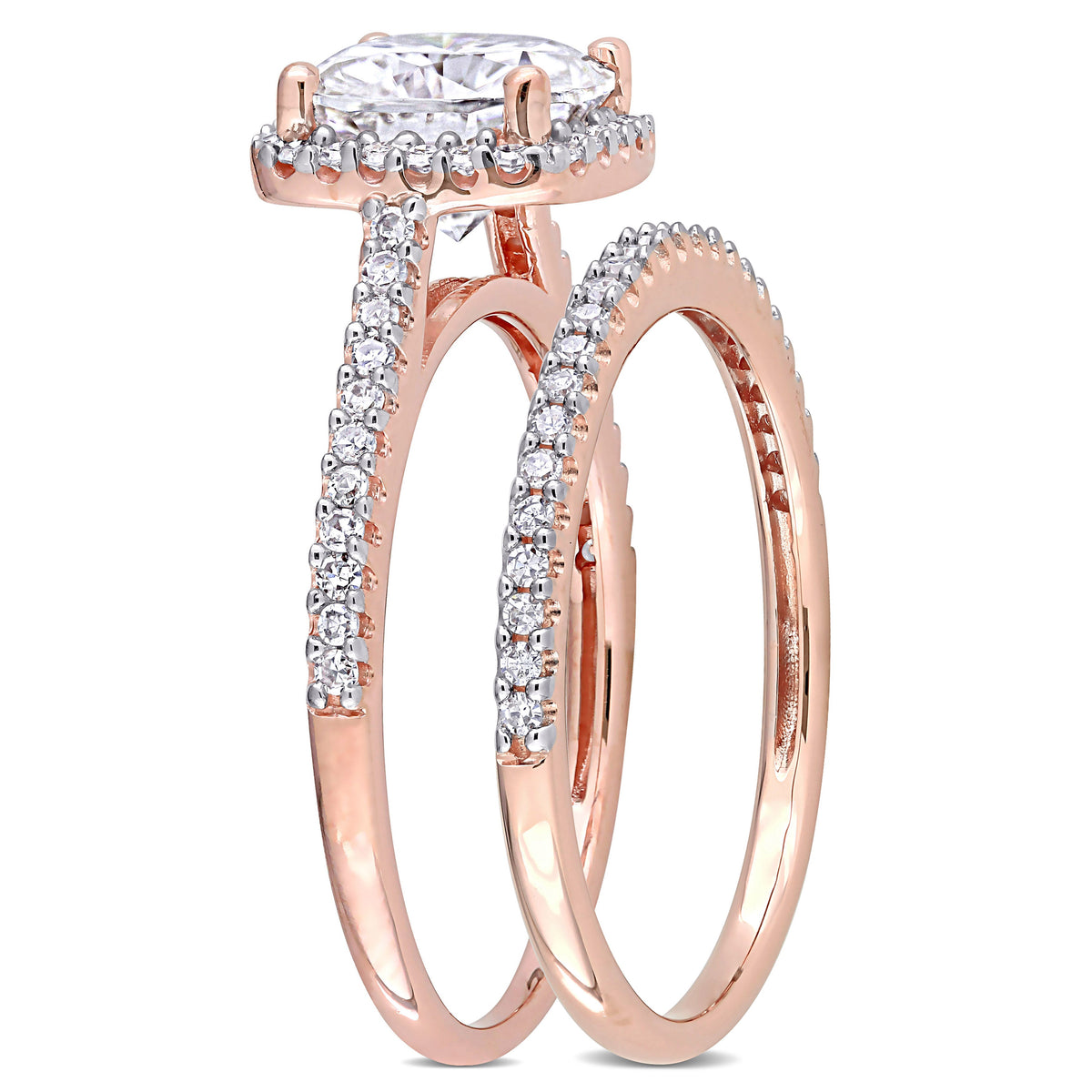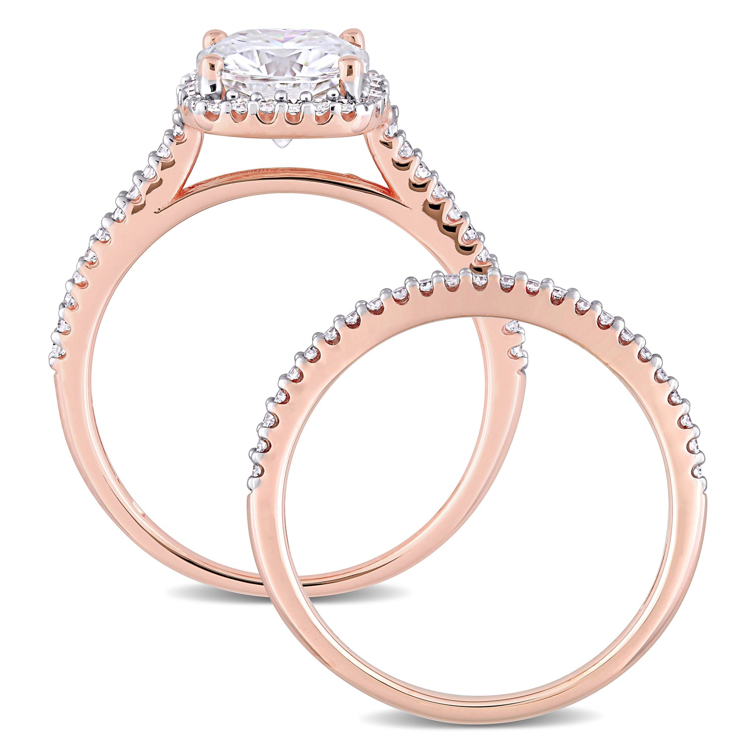 2 ct DEW Cushion Created Moissanite and 1/3ct TW Diamond Bridal Ring Set in 14k Rose Gold