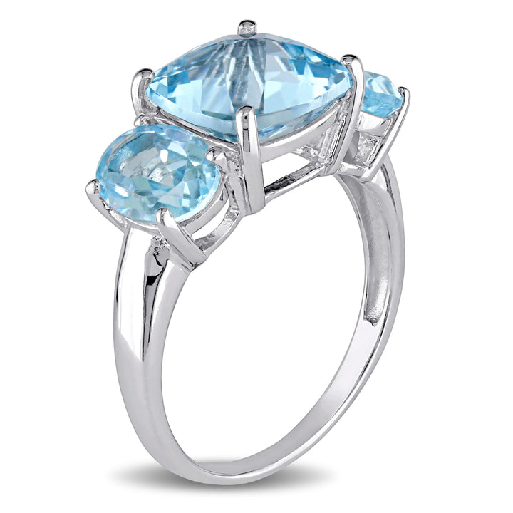 8 2/5ct TW Cushion-Cut Sky Blue Topaz 3-Stone Ring in Sterling Silver