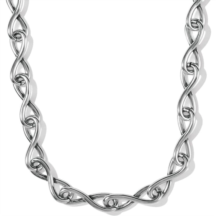 This Women's Interlock Twist Necklace in Silver by Brighton features interlocking infinity links that swoop and swirl, connecting in an endlessly beautiful design. Inspired by eternal love and loyalty, it can be layered or worn alone for a chic, timeless look.