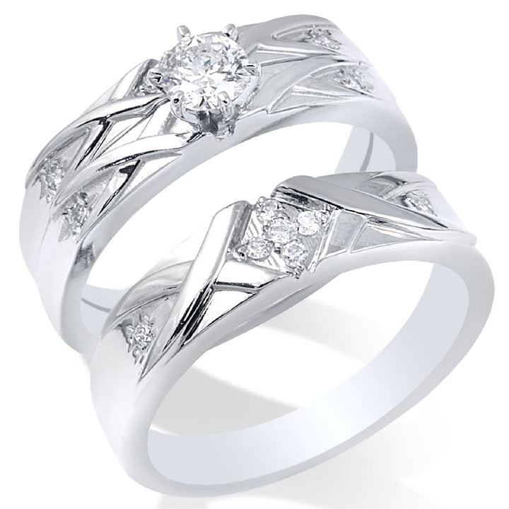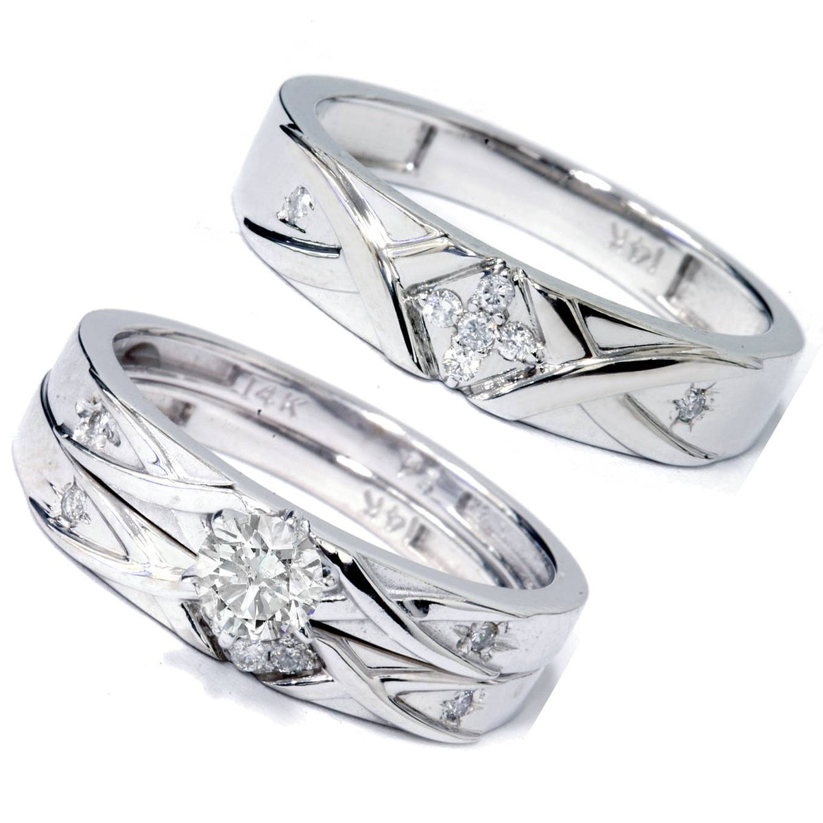 Matching Diamond Engagement Wedding Ring Set His Hers White Gold 14k