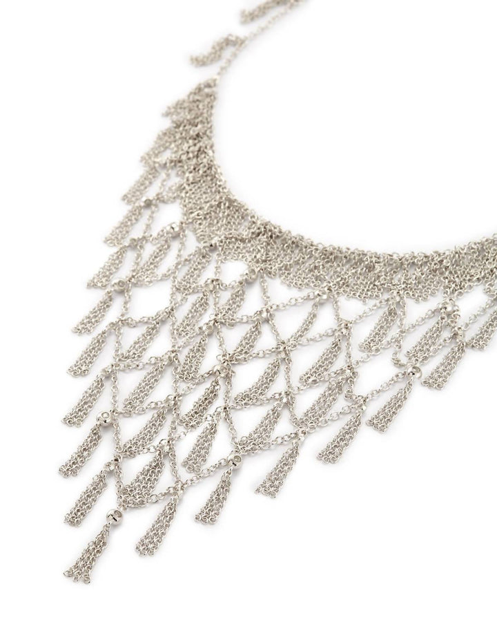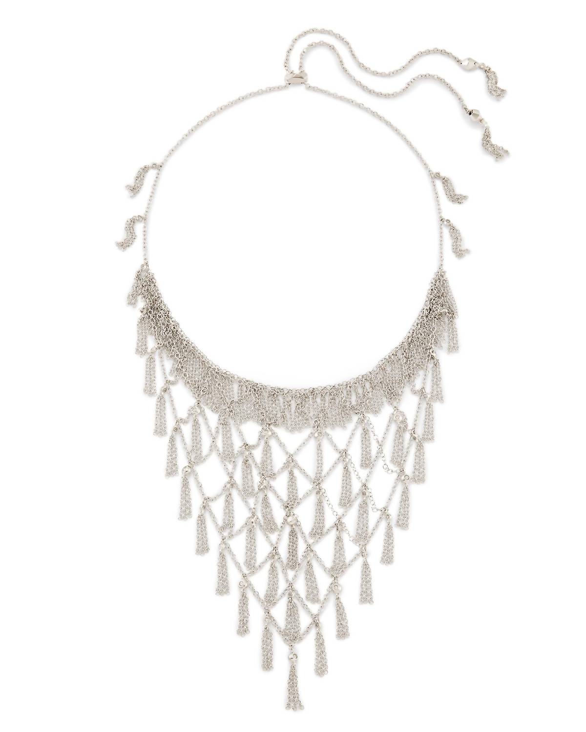 The Georgina Necklace in Rhodium Plate/White CZ by Kendra Scott is a stylish statement piece with an adjustable sliding bead closure. Made with rhodium-plated brass and cubic zirconia, this necklace is a perfect complement to casual or dressy outfits, adding just the right amount of sparkle.