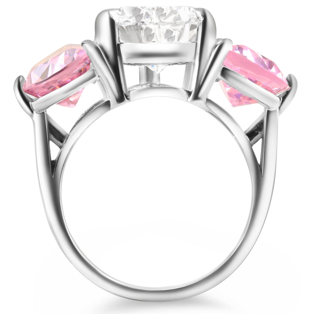 This Certified 15.40Ct Pear shaped Diamond Engagement Ring in 14K White Gold by Pompeii3 features a stunning 6ct certified lab-grown diamond in a pear shaped. The side stones are pink half-moon gemstones, adding a pop of color to the design. Set in solid 14K white gold, the ring offers a highly polished finish, making it a luxurious choice for any engagement. The IGI certification ensures the authenticity of the center diamond, adding peace of mind to this magnificent piece.