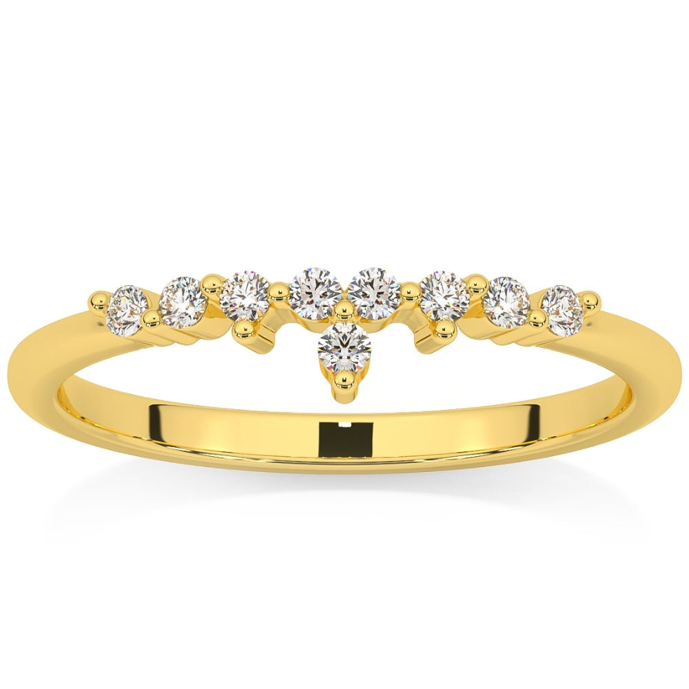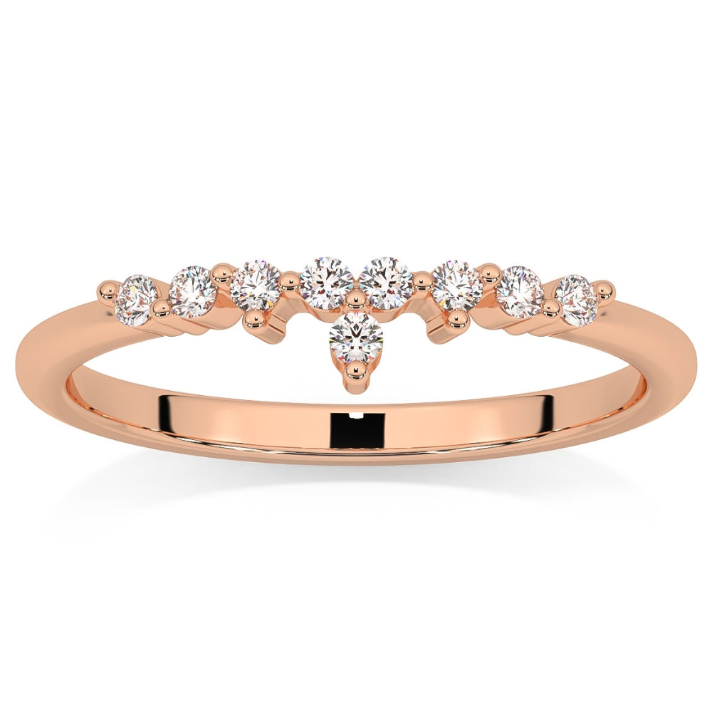 This 1/5Ct Stackable Diamond Anniversary Ring Wedding Band by Pompeii3 is a delicate and unique piece, featuring round-cut genuine lab-grown diamonds prong set in solid 14K polished gold. Perfect for stacking with other rings or accenting your engagement ring, this band adds a touch of elegance and versatility to any collection. It's simple design allows it to complement a variety of styles while maintaining a timeless beauty.