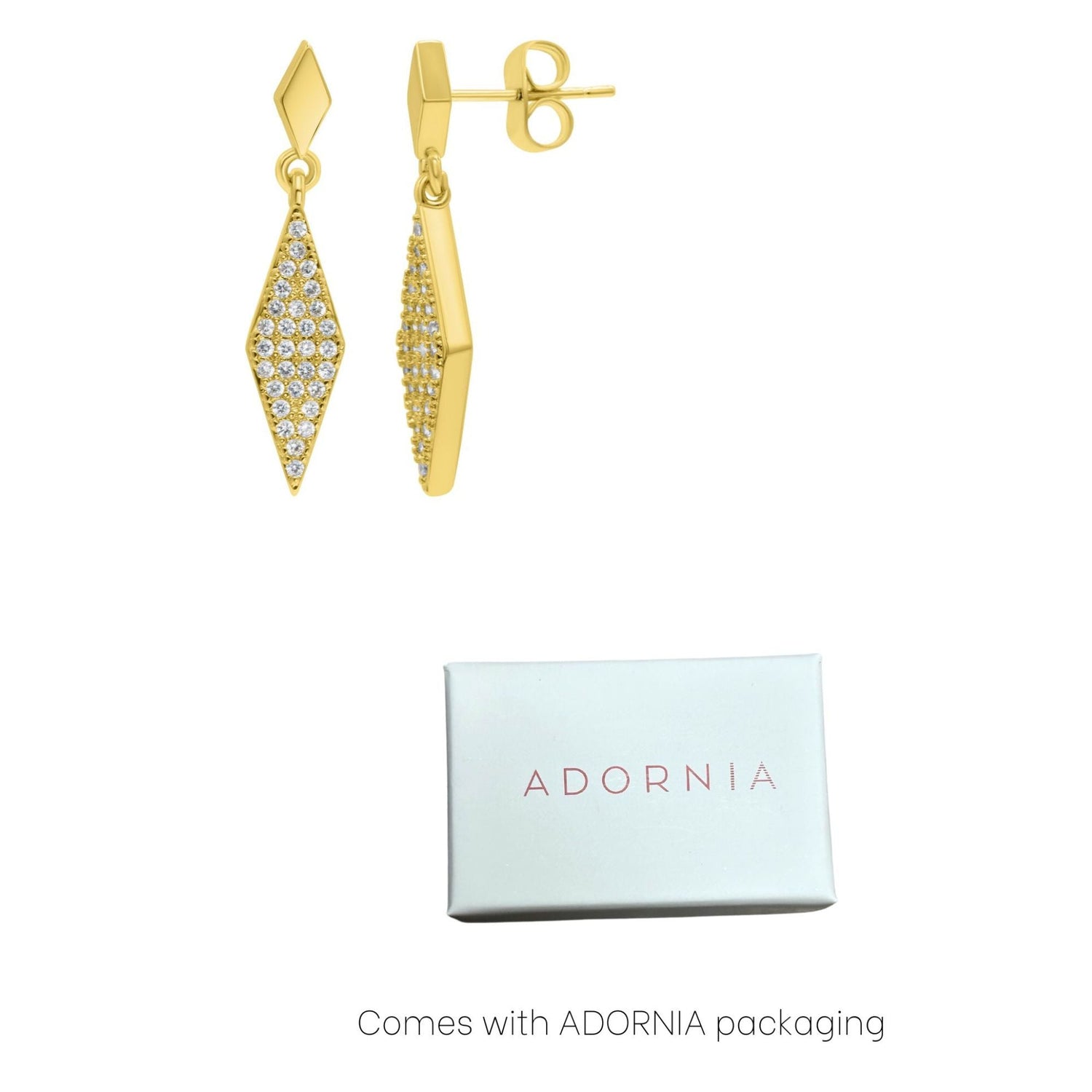 These 14K Gold Plated Diamond Drop Earrings by Adornia are the perfect everyday luxury accessory. The sleek, linear design features radiant cubic zirconia that catch the light beautifully, making them a perfect complement to any outfit.