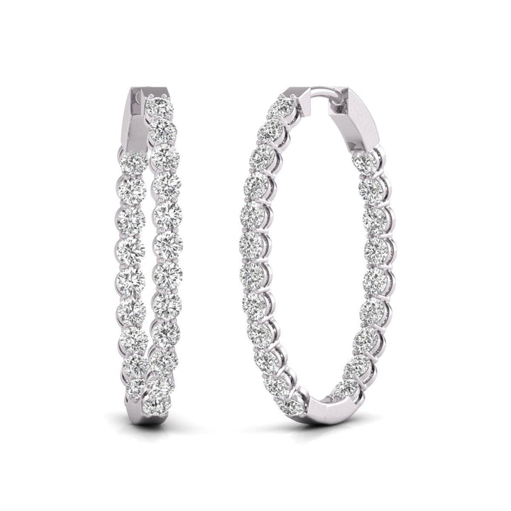 Crafted in solid 14k white gold with 7ct total weight round lab-grown diamonds in an in-and-out oval hoop design.