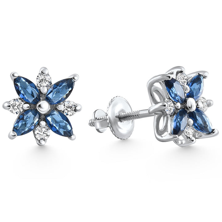 .60Ct Petal Marquise Blue Sapphire Diamond Studs Earrings White Gold Lab Grown