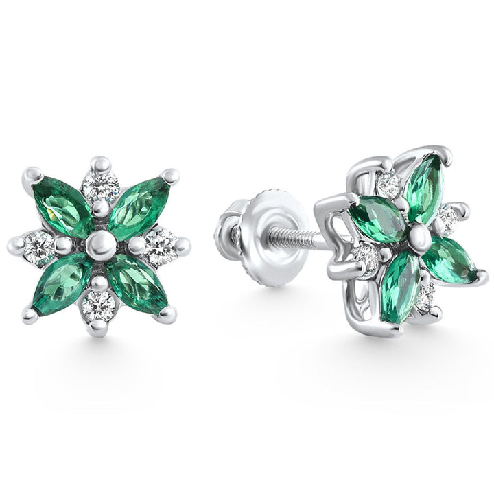 .60Ct Petal Green Emerald Diamond Earrings 14k White Gold Lab Grown Screw Back