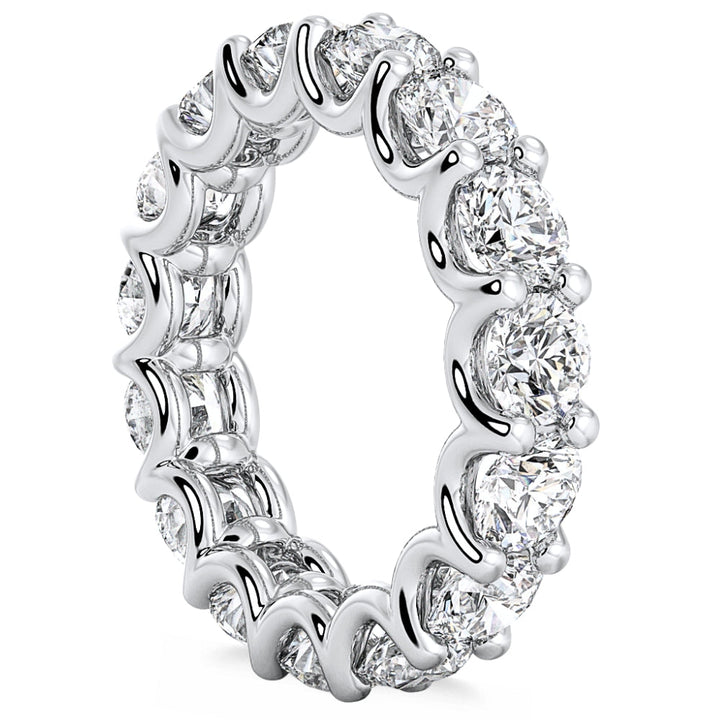 Made from solid 14K white gold, set with round brilliant-cut lab-grown diamonds totaling 5ct. The diamonds are prong set in a polished eternity band.