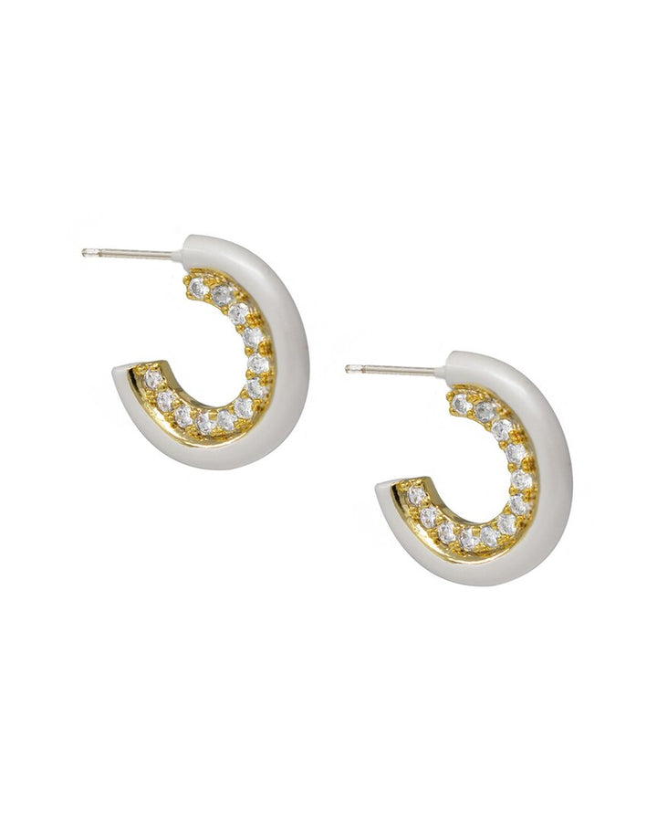 Crafted in 14K yellow gold-plated brass with cubic zirconia stones and enamel. Hoop drop: 0.75 inches. Post back closures.