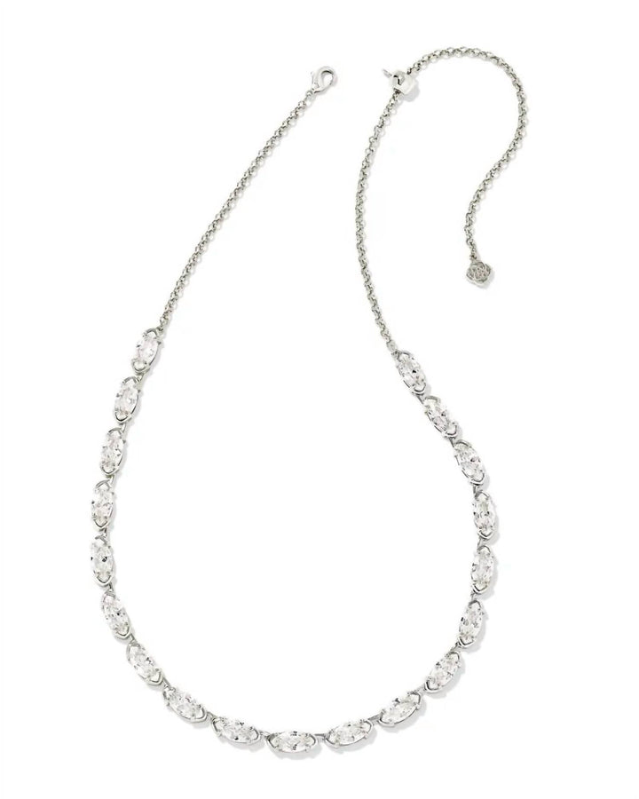 The Women’s Genevieve Strand Necklace in Silver and White CZ by Kendra Scott adds glamour and sparkle to any ensemble. Designed with a bold chain studded with crystals, this elegant piece layers beautifully or makes a statement on its own.