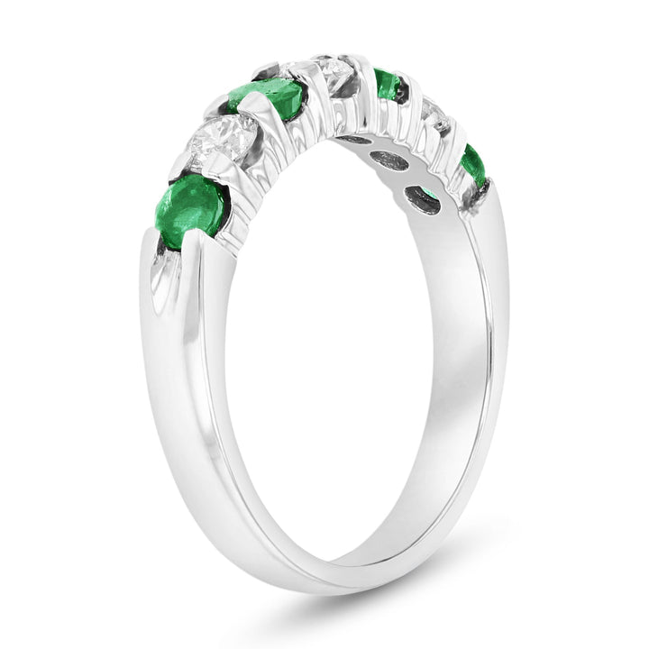 14K Gold Ring 1.00ct tw Round Diamonds and Emeralds Prong Set Band