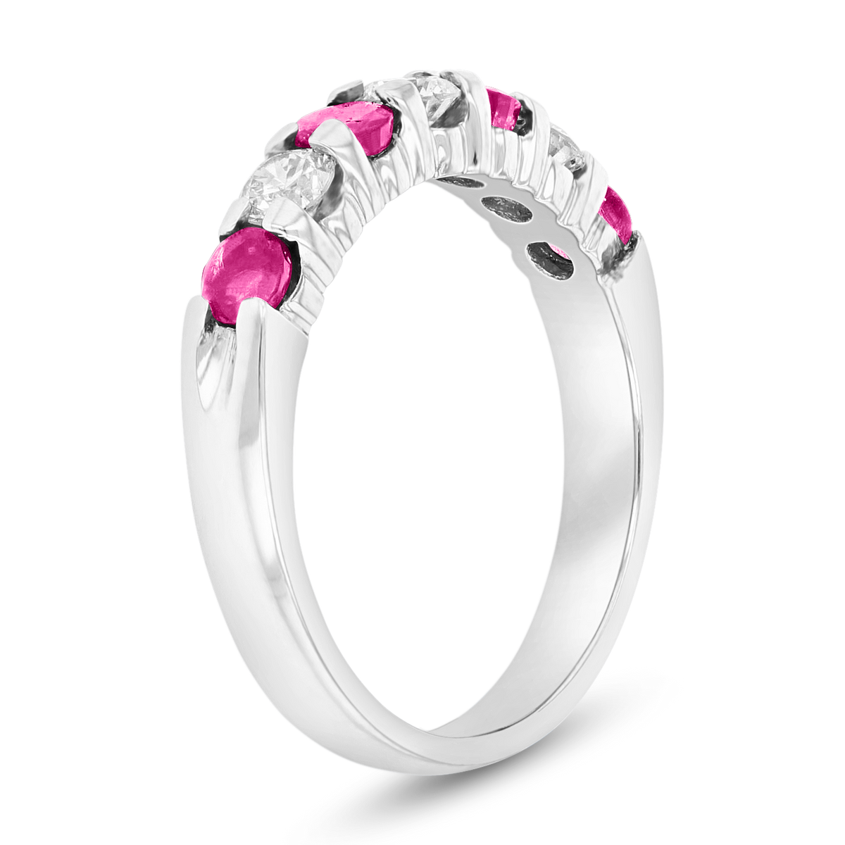 14k Gold Ring 1.00ct tw Round Diamonds and Natural Heated Rubies Prong Set Band