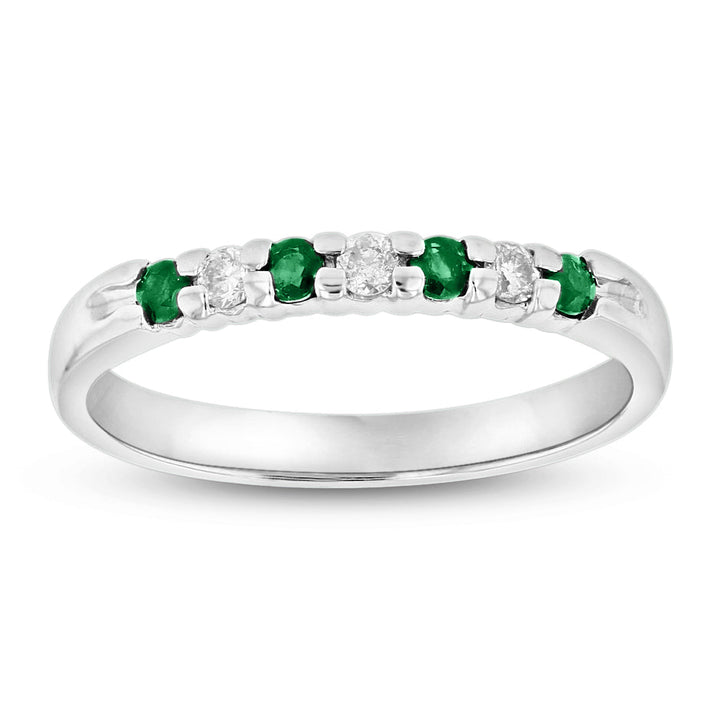 This 14K Gold Prong Set Band with 0.27ct tw Round Diamonds and Emeralds by Diana M Jewels exudes understated elegance. A slender band featuring diamonds and emeralds, ideal for layering or wearing alone for a hint of color and brilliance.