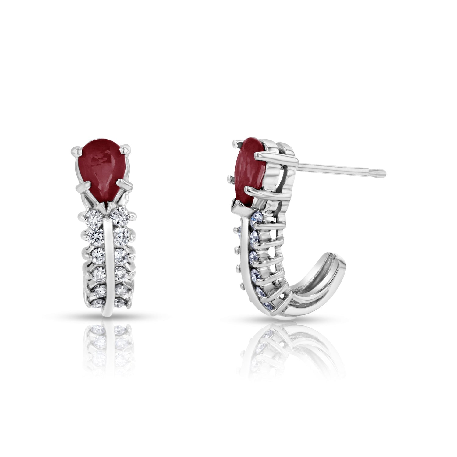 0.30ctw Diamonds and Ruby Earrings in 14k White Gold