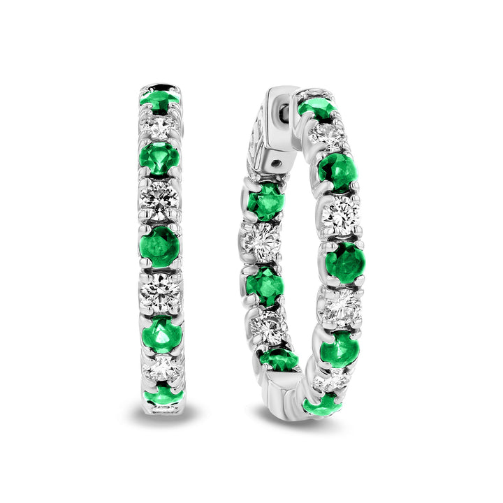 3.58ctw Diamond and Emerald Hoop in 14k White Gold