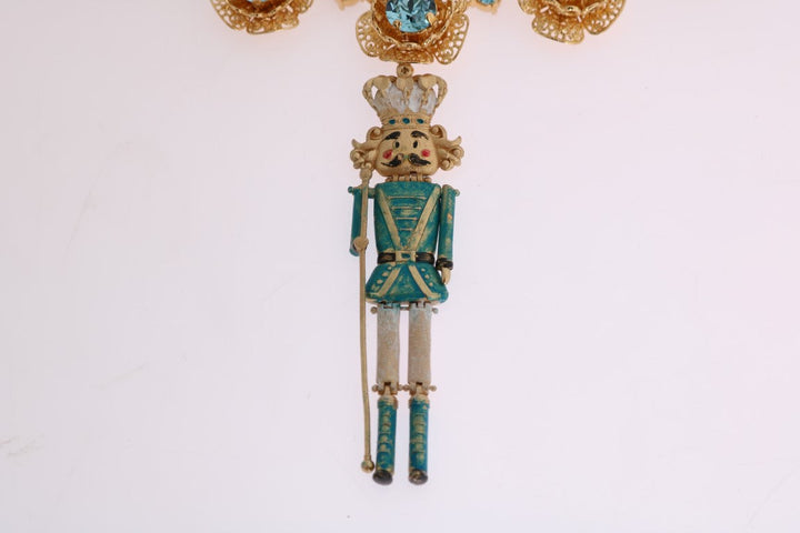 This Elegant Crystal Statement Women's Necklace by Dolce & Gabbana effortlessly elevates any outfit with luxurious Italian craftsmanship and dramatic elegance. Showcasing intricate gold crystal detailing paired with an enchanting hand-painted Pupi Doll Sicily motif, this necklace is a distinctive work of art. Expertly crafted from a lavish combination of brass and sparkling crystal, it possesses a refined weight and exceptional shine. Finished with a classic lobster clasp and marked by the Dolce & Gabbana logo, this statement piece represents a striking blend of sophistication, authenticity, and timeless glamour.