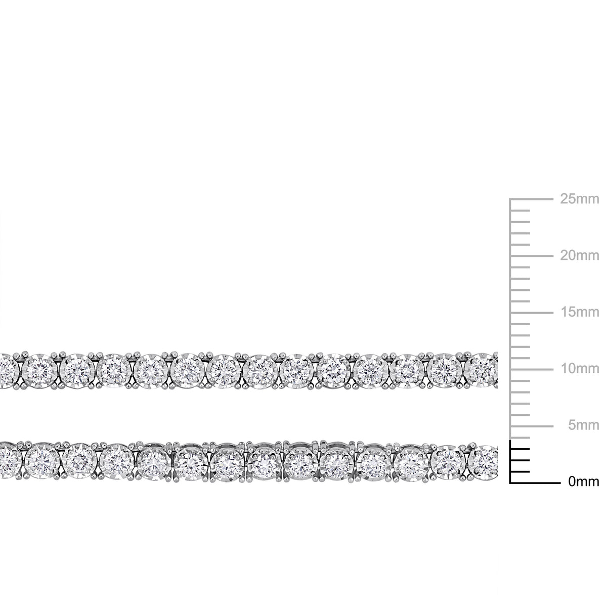 Crafted in 14k white gold with 8 7/8 carats of round-cut lab-grown diamonds.