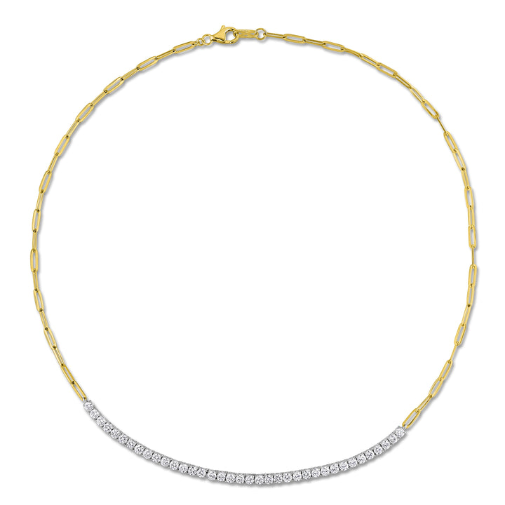 Handcrafted in 14k two-tone gold (white and yellow) featuring 1 5/8 total carat weight (TW) of lab-grown diamonds set along a 16-inch oval link tennis-style chain.