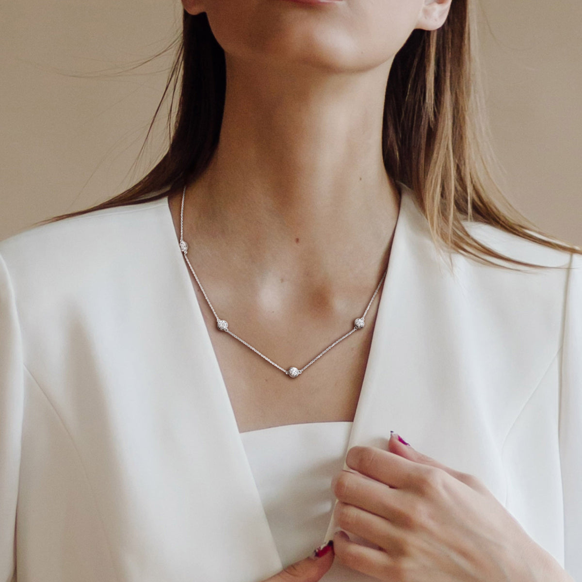 This Created Forever 1 3/4ct TW Lab-Grown Diamond 3-Stone Necklace in 14k white gold is a timeless blend of luxury and sustainability. The elegant design features three brilliant lab-grown diamonds spaced along a delicate chain, offering a continuous sparkle. The 16-inch chain, with a 2-inch extender, ensures a comfortable fit while enhancing the necklace’s versatility for both day and evening wear. This necklace is perfect for special occasions or everyday elegance.