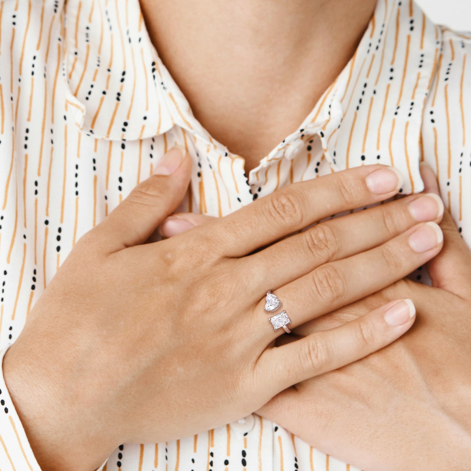 2ct TW radiant-cut and heart-shaped lab-grown diamonds, set in 14k white gold band.