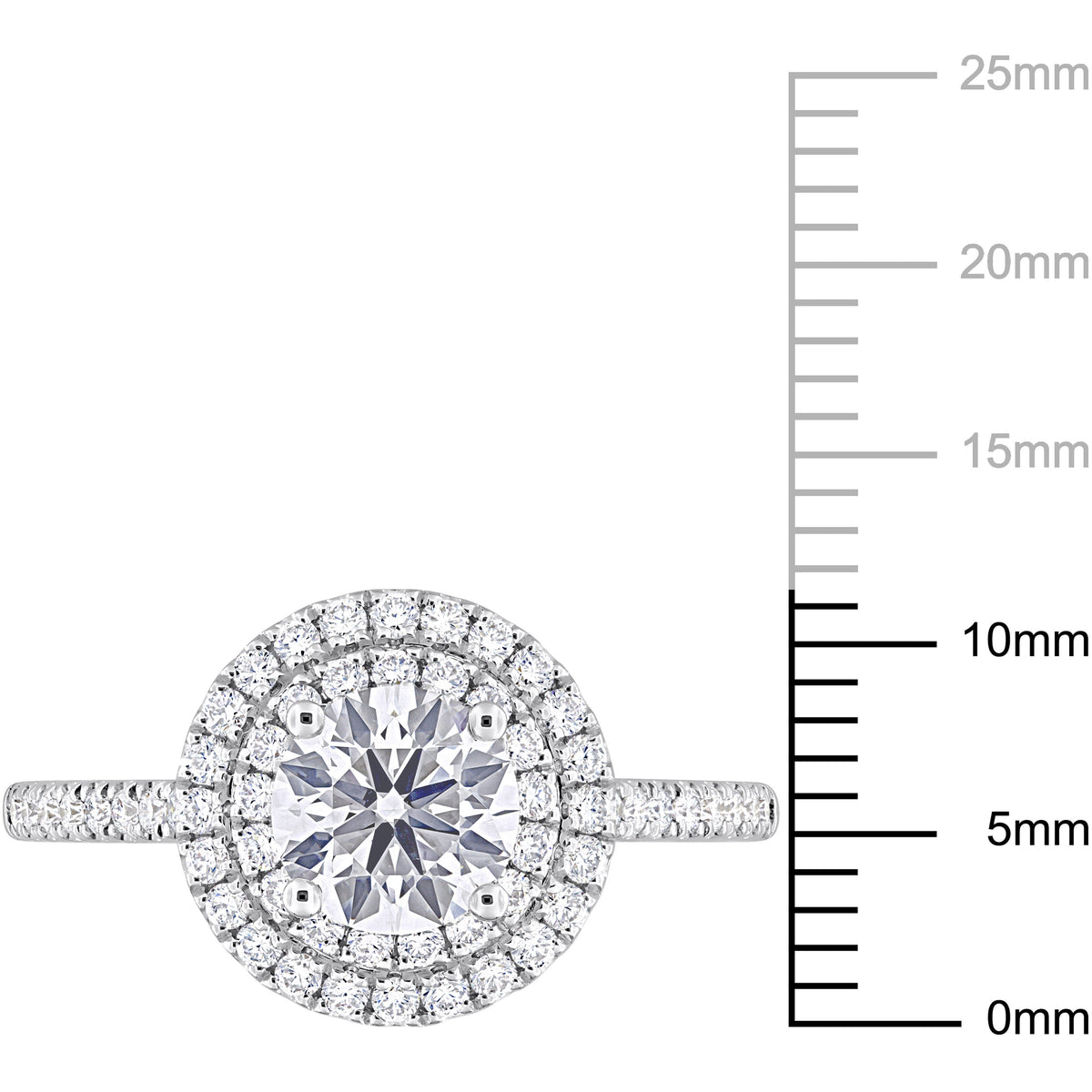 This Created Forever 1 1/2ct TW Lab-Grown Diamond Double Halo Engagement Ring in 14k white gold is designed to enhance the brilliance of your love. The central lab-grown diamond is encircled by two halos of smaller diamonds, creating an impactful sparkle that catches the eye. The sleek 14k white gold band complements the luxurious design, making it a perfect symbol of your commitment to both luxury and ethical beauty.
