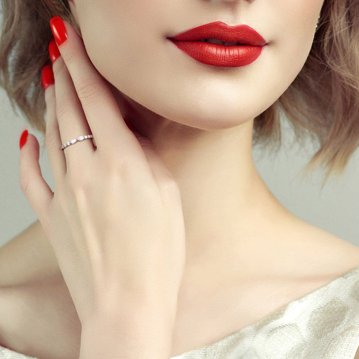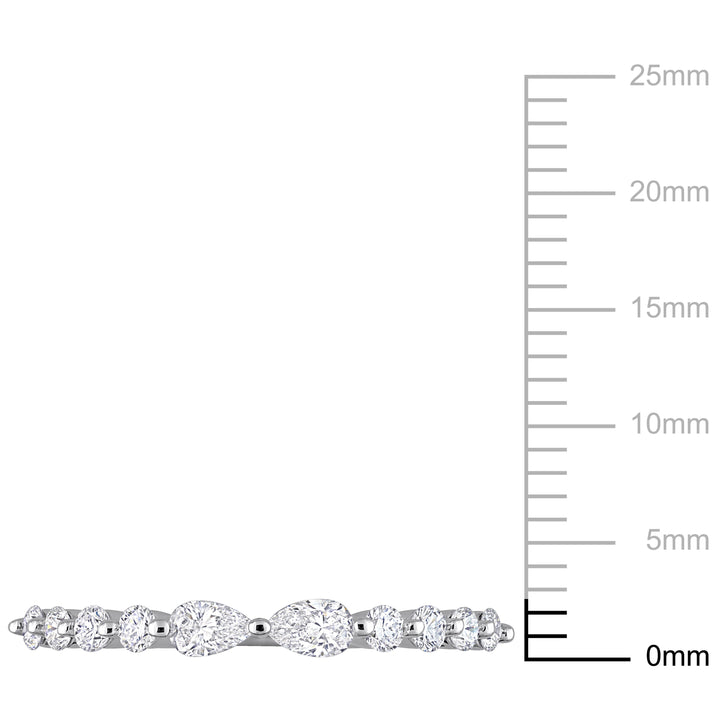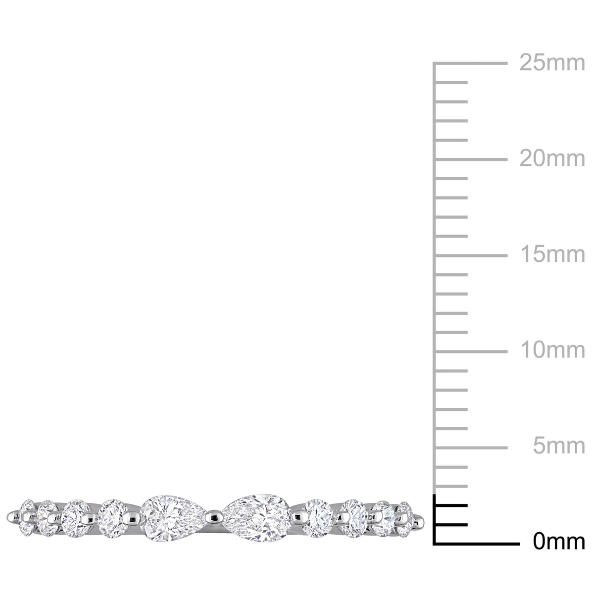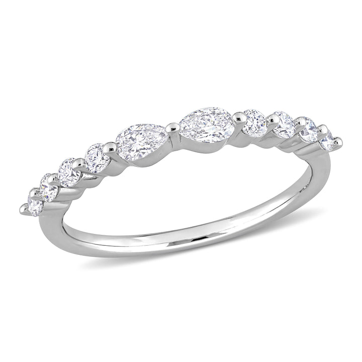 This Created Forever 5/8ct TW Lab-Grown Diamond Ring in platinum-plated sterling silver is a masterpiece of craftsmanship, featuring alternating pear-shaped and round-cut diamonds that shine brilliantly against the backdrop of a luxurious platinum-plated sterling silver band. Its semi-eternity style ensures a sparkling display from all angles, making it a perfect choice for marking special occasions or symbolizing lasting love.
