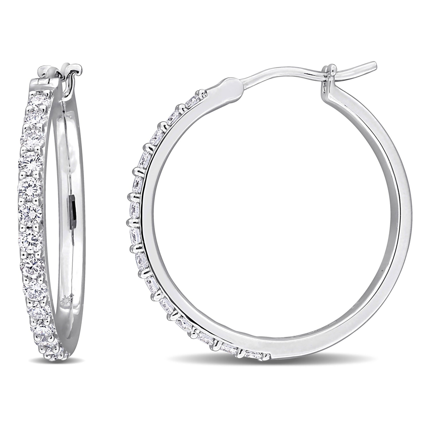 Crafted in sterling silver with 1 carat total weight of lab-grown diamonds, set in a hoop design.