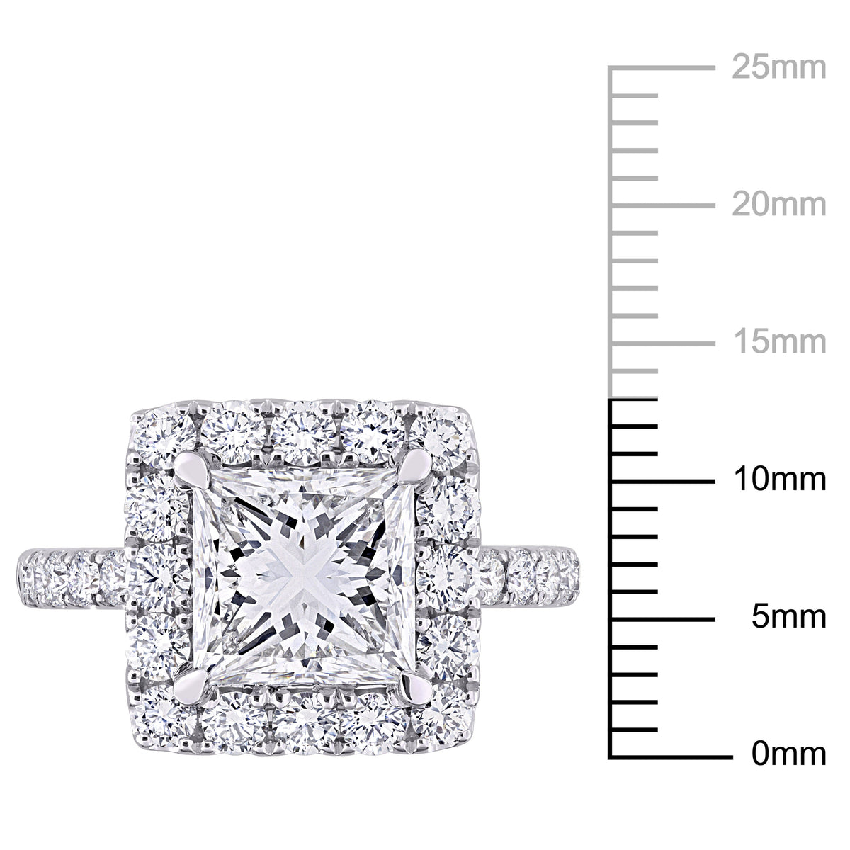 This Created Forever 4 1/3ct TW Princess Lab-Grown Diamond Halo Engagement Ring by Created Forever is a striking celebration of love, elegance, and enduring commitment. Featuring a luminous princess-cut lab-grown diamond at its center, the design is elevated by a sparkling halo and a diamond-adorned band that radiates brilliance from every angle. Crafted to symbolize the strength and beauty of lasting love, this timeless ring captures the magic of a forever promise. The refined 14k white gold setting adds a touch of classic sophistication, perfectly balancing the bold sparkle of its 4 1/3 carat total diamond weight. Designed to make your proposal moment unforgettable, this piece exudes luxury and grace.