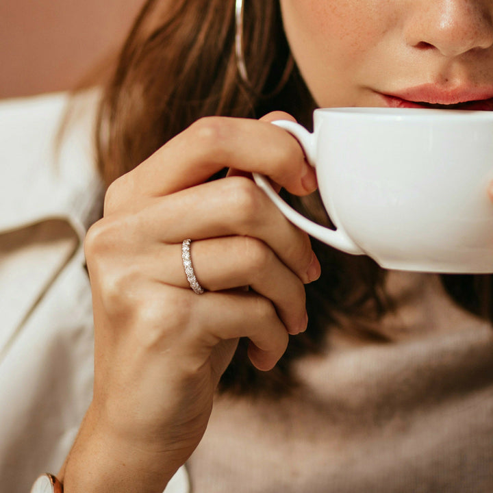 Handcrafted in 14k white gold featuring 1 total carat weight (TW) of lab-grown diamonds in a semi-eternity setting.