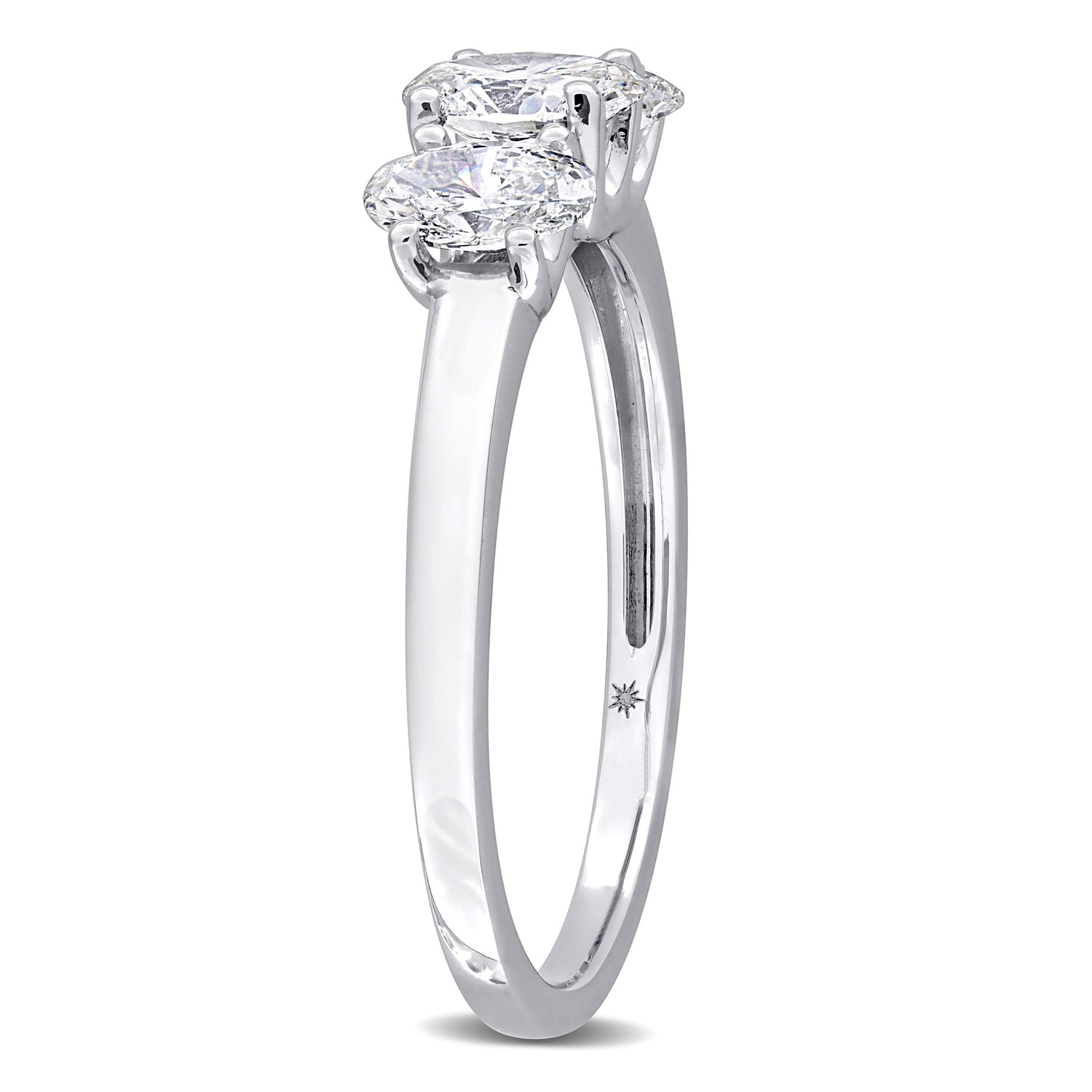 1ct TW oval-shaped lab-grown diamonds, 14k white gold band, three-stone setting.