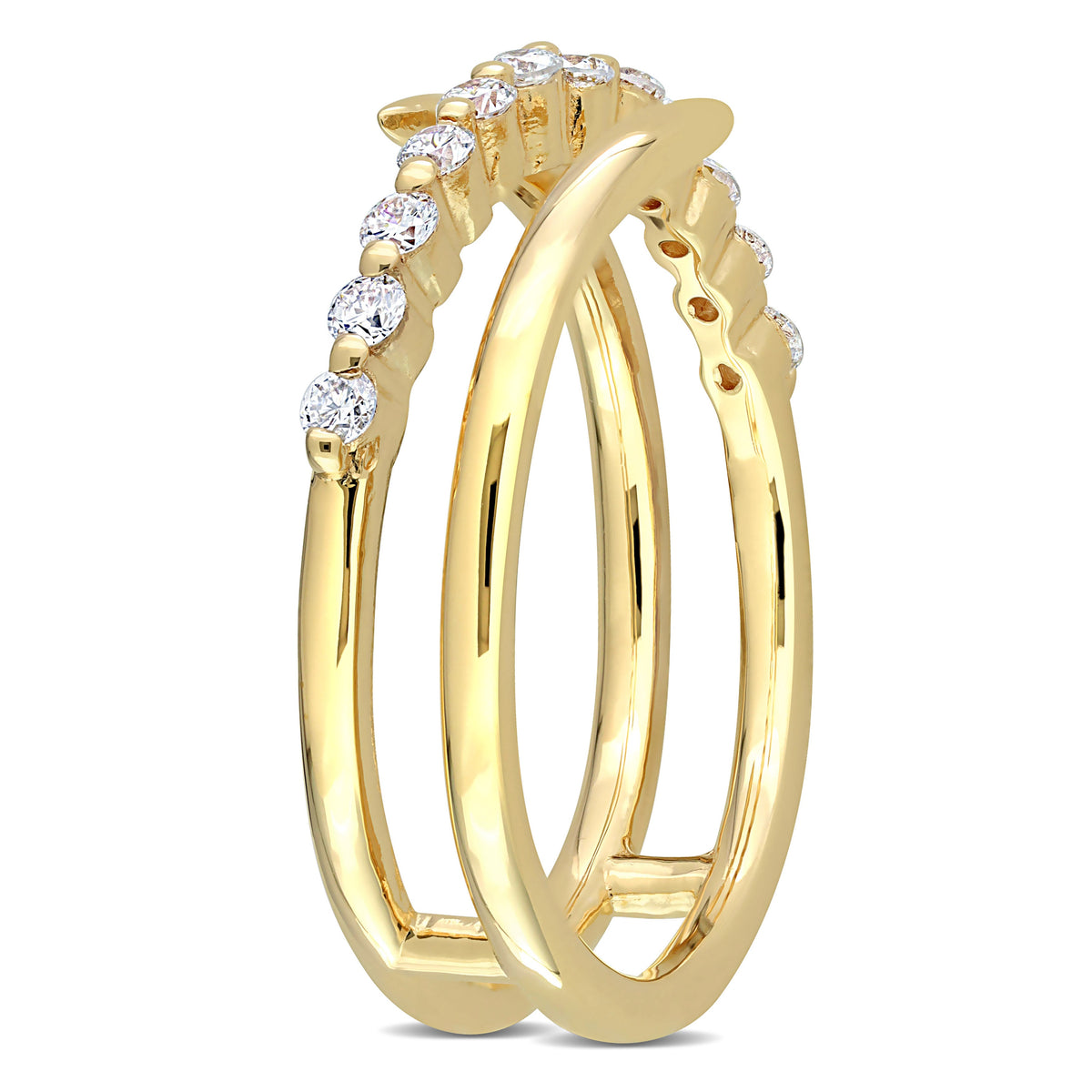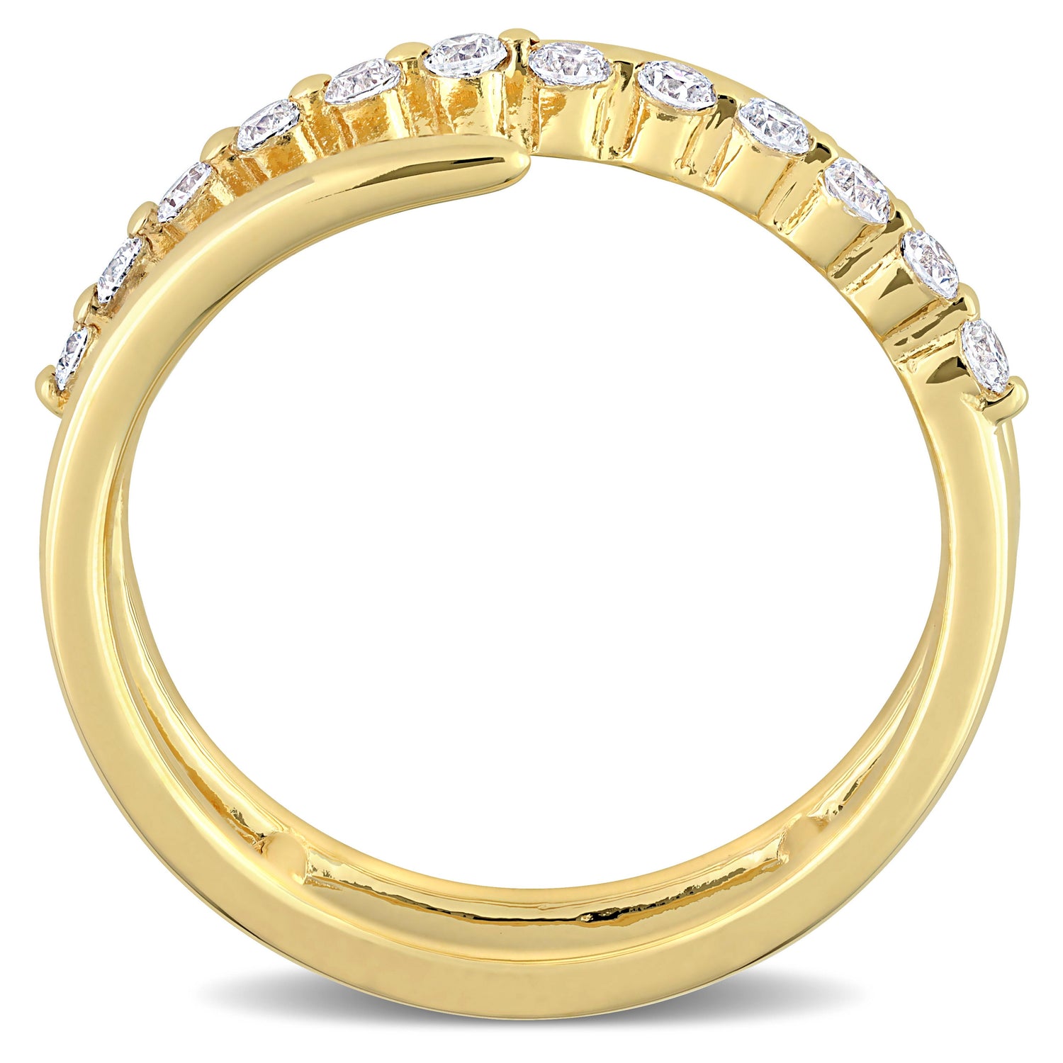 Crafted in 18k yellow gold-plated sterling silver with 1/4 carat total weight lab-grown diamonds. Designed in a coiled wrap silhouette.