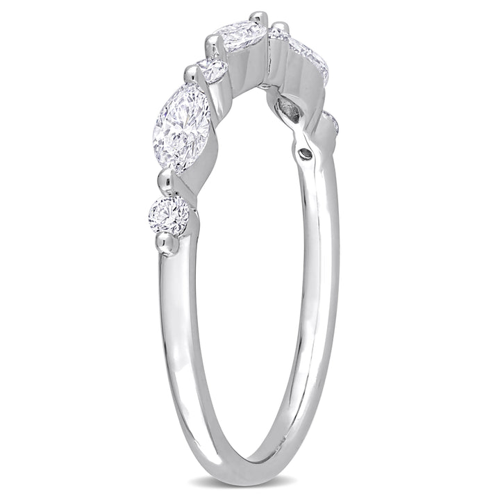 This Created Forever 1/2ct TW Marquise Lab-Grown Diamond Ring by Created Forever effortlessly blends contemporary design with enduring elegance. The distinctive semi-eternity band is thoughtfully crafted with an enchanting combination of marquise and round-cut lab-grown diamonds, arranged to maximize brilliance and create a continuous shimmer with every movement. Symbolizing everlasting love and refined style, the platinum-plated sterling silver setting not only ensures lasting durability but also enhances the radiant sparkle of the diamonds. Ideal for commemorating life's special moments or expressing deep commitment, this sophisticated piece can be beautifully worn alone or stacked to personalize your look.