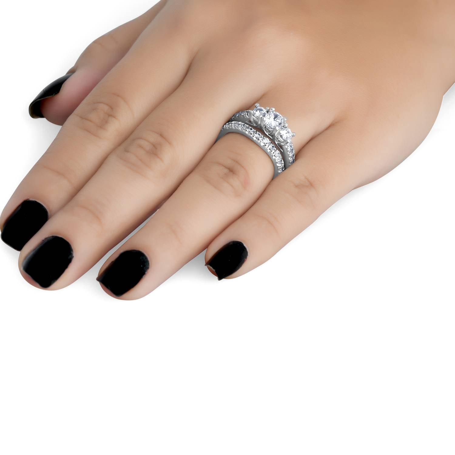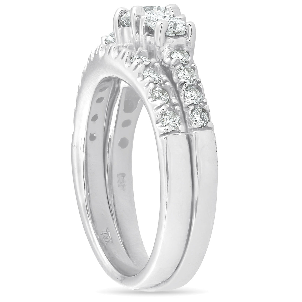 1 1/2 ct 3-Stone Diamond Engagement Ring Matching Wedding Band Set White Gold