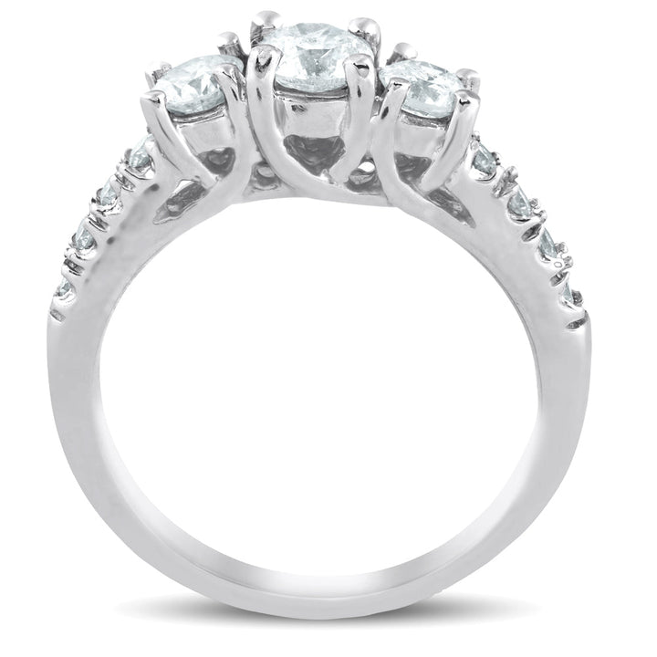 1 1/10 Ct Diamond Three Stone Engagement Ring 14K White Gold