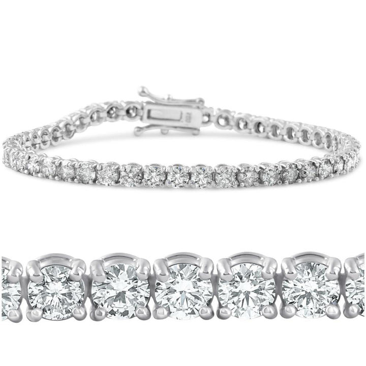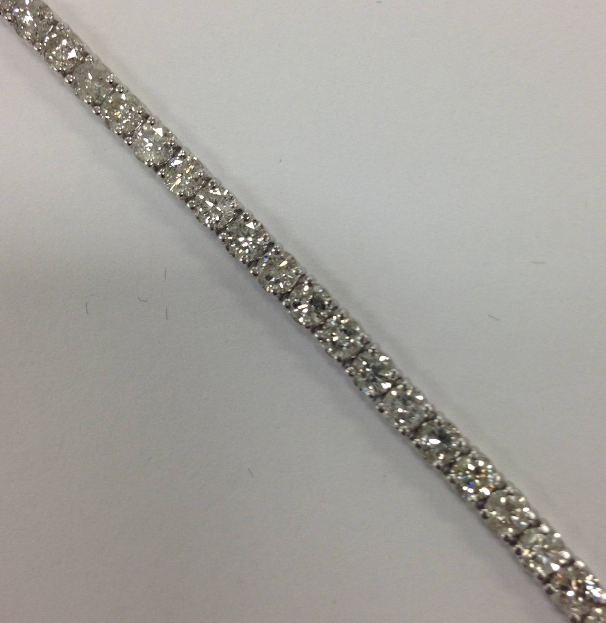 Handcrafted in 14k white gold with round brilliant cut natural diamonds totaling 7ct. Measures 7' in length with a double locking clasp.