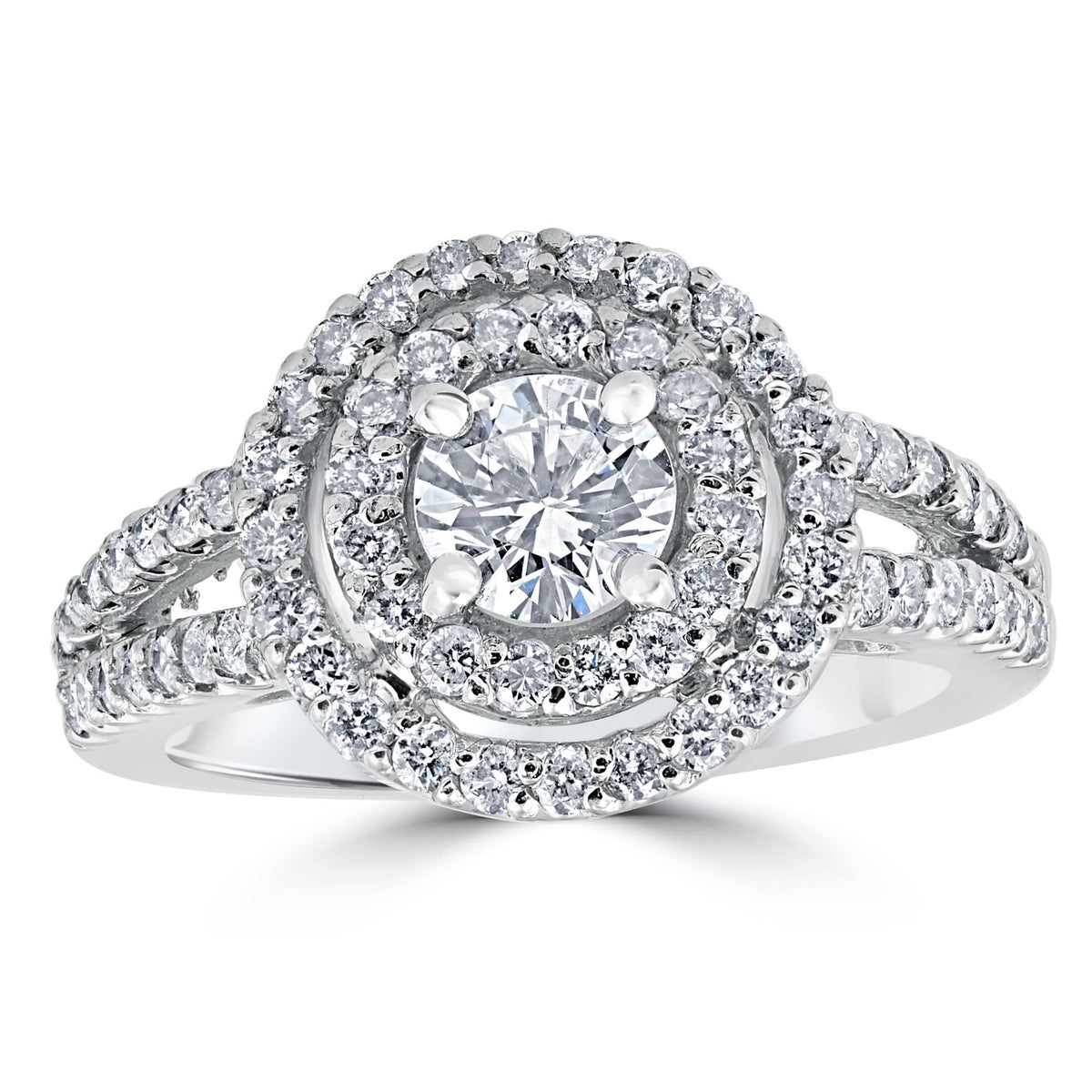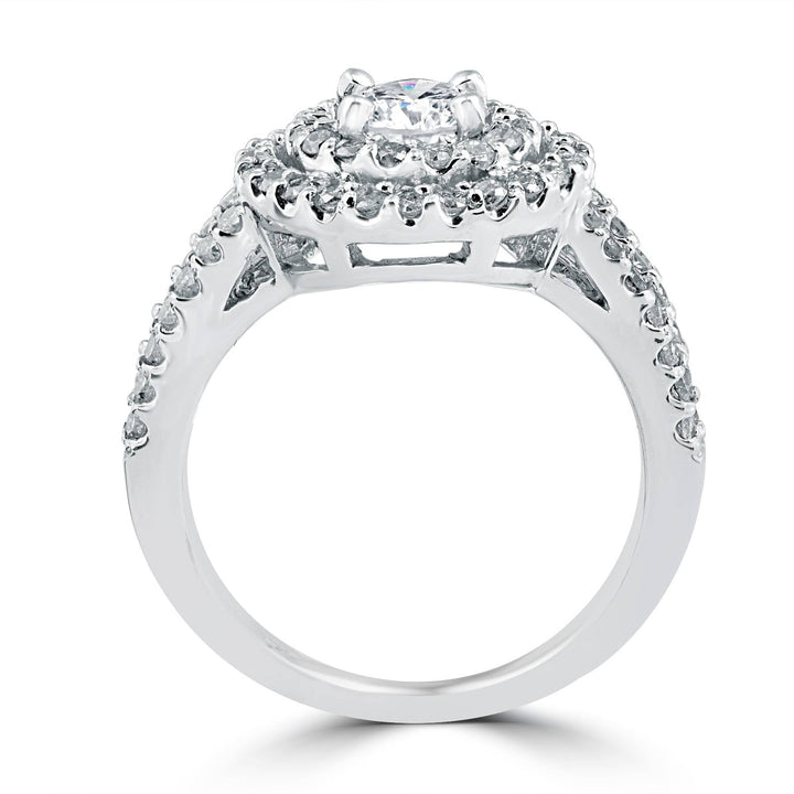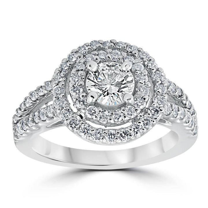 1 1/2 cttw Pave Double Halo Round Brilliant Cut Engagement Ring 14K White Gold